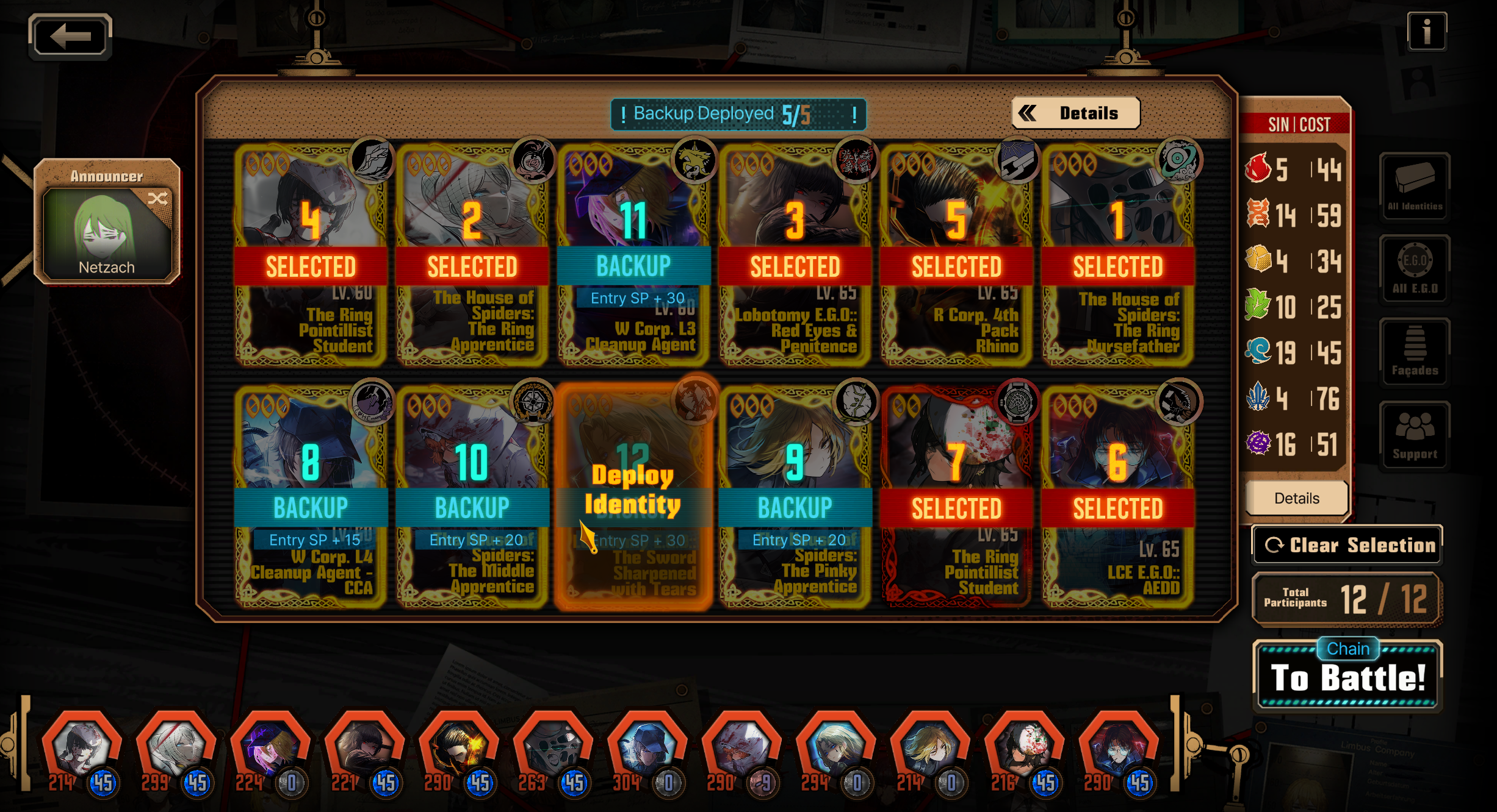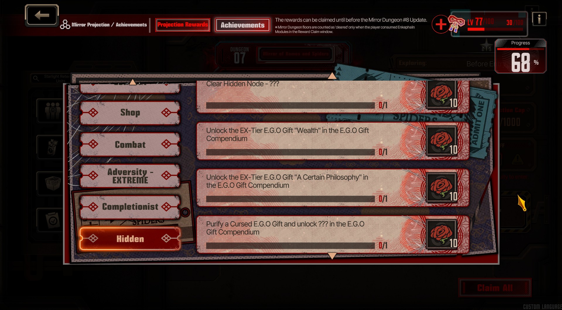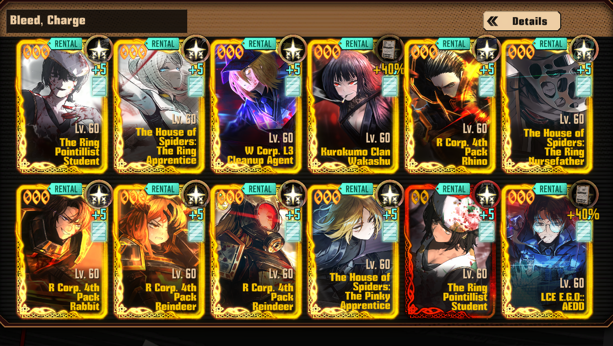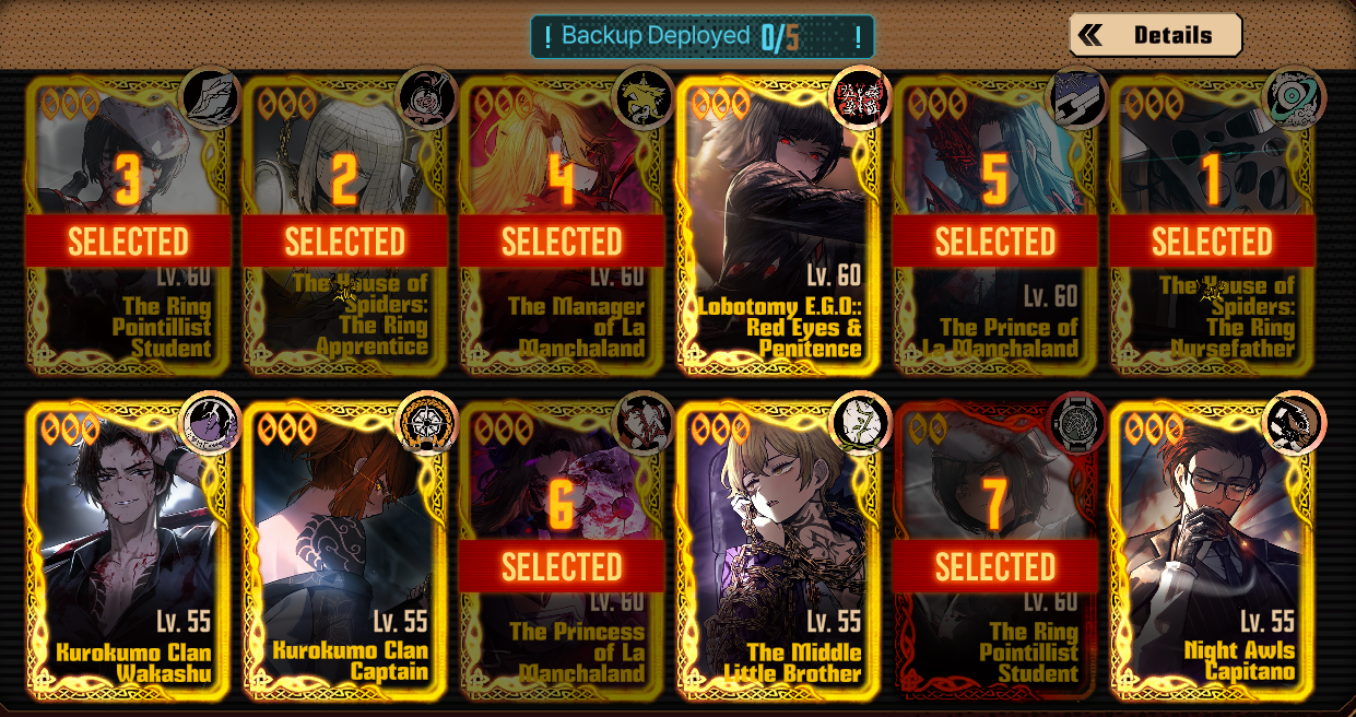 Previous thread: >>562973370Season 7 - Kumo no Ito2025.12.31 —Mirror Dungeon #7 - Mirror of Names and Spiders2026.02.19 —Refraction Railway Line 5 - Merry Go Round2025.02.20 —>Upcoming Events2026.04.16 — 2026.05.14Chapter 9.5 - Twining Threads>Current Events2026.03.19 — 2026.04.16Chapter 7.5 - LCB Regular Check-up BokGak>Current Extractions2026.04.02 — 2026.04.16[000] The House of Spiders: The Ring Nursefather Hong Lu[000] The House of Spiders: The Ring Apprentice Faust2026.03.19 — 2026.04.16[000] LCE E.G.O:: AEED Gregor[HE] Ardor Blossom Star Faust2026.04.02 — 2026.04.16Target Extraction: [ Yi Sang ]FAQs! This game is directly tied to the setting of Project Moon's previous games, Lobotomy Corporation and Library of Ruina, and is set after both. Expect spoilers for those games in this thread.! The tutorial is important.>Download linksAppStore: https://apps.apple.com/app/limbus-company/id6444112366Google Play: https://play.google.com/store/apps/details?id=com.ProjectMoon.LimbusCompanySteam: https://store.steampowered.com/app/1973530/Limbus_Company/>Other linksOfficial twitter: https://twitter.com/limbuscompany_bOfficial youtube: https://www.youtube.com/@ProjectMoonOfficialOfficial site: https://limbuscompany.global>Required readinghttps://mega.nz/folder/xosDkZ5Z#Wt4JpUt5Bb2XG77pxuuXpw>For all your EGO and Sinner info needshttps://limbus.kusoge.xyz/https://gll-fun.com/en/>Useful resources and a general guidehttps://rentry.org/lcg_resourceshttps://rentry.org/lcbguidehttps://rentry.org/LCB_optimal_grind_guidehttps://lcb-days-since-last-id.carrd.co/https://lcb-days-since-last-ego.carrd.co/>Countdownhttps://lcbcountdown.carrd.co/