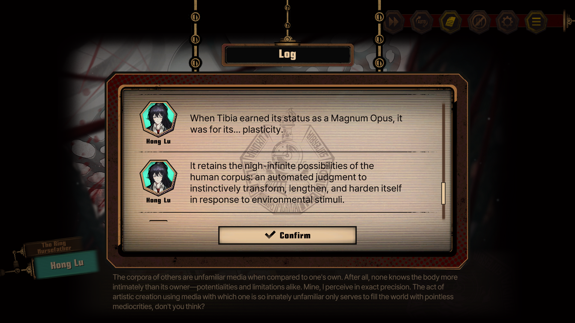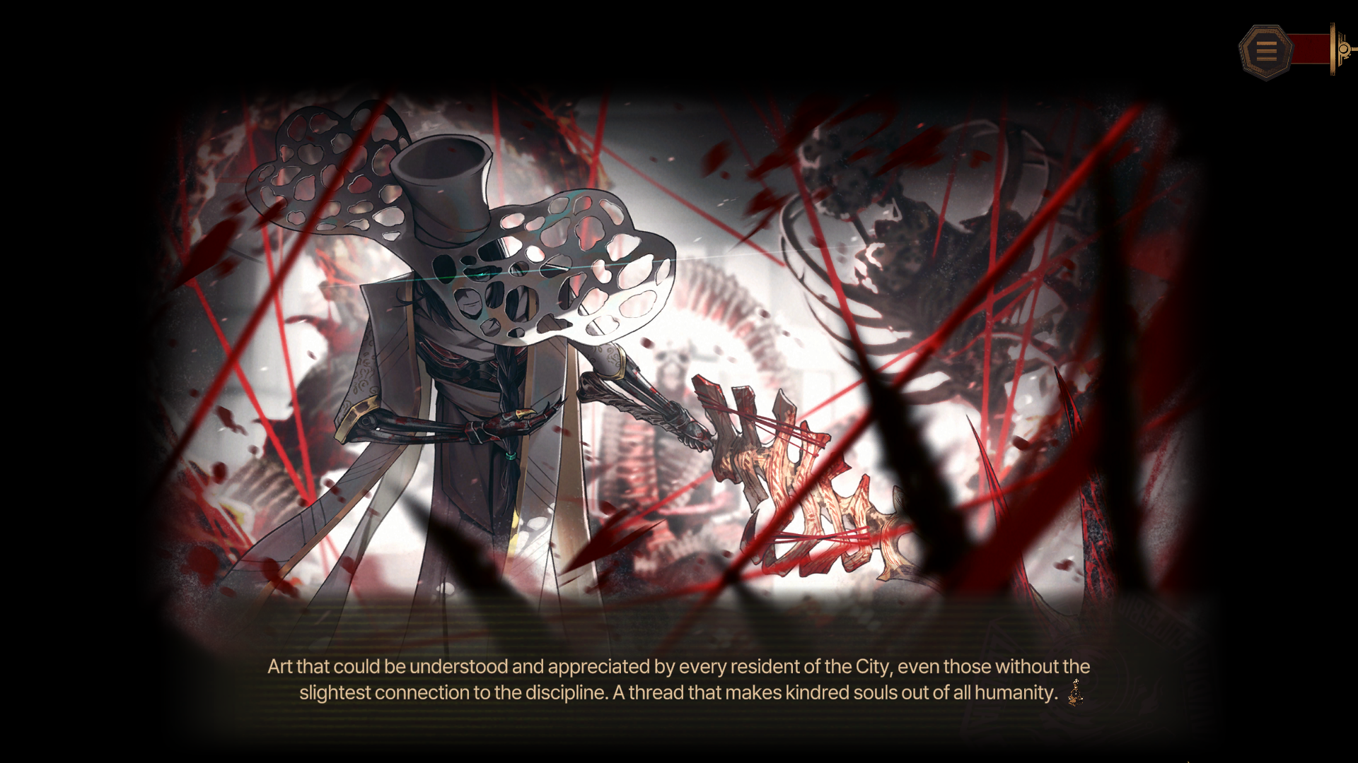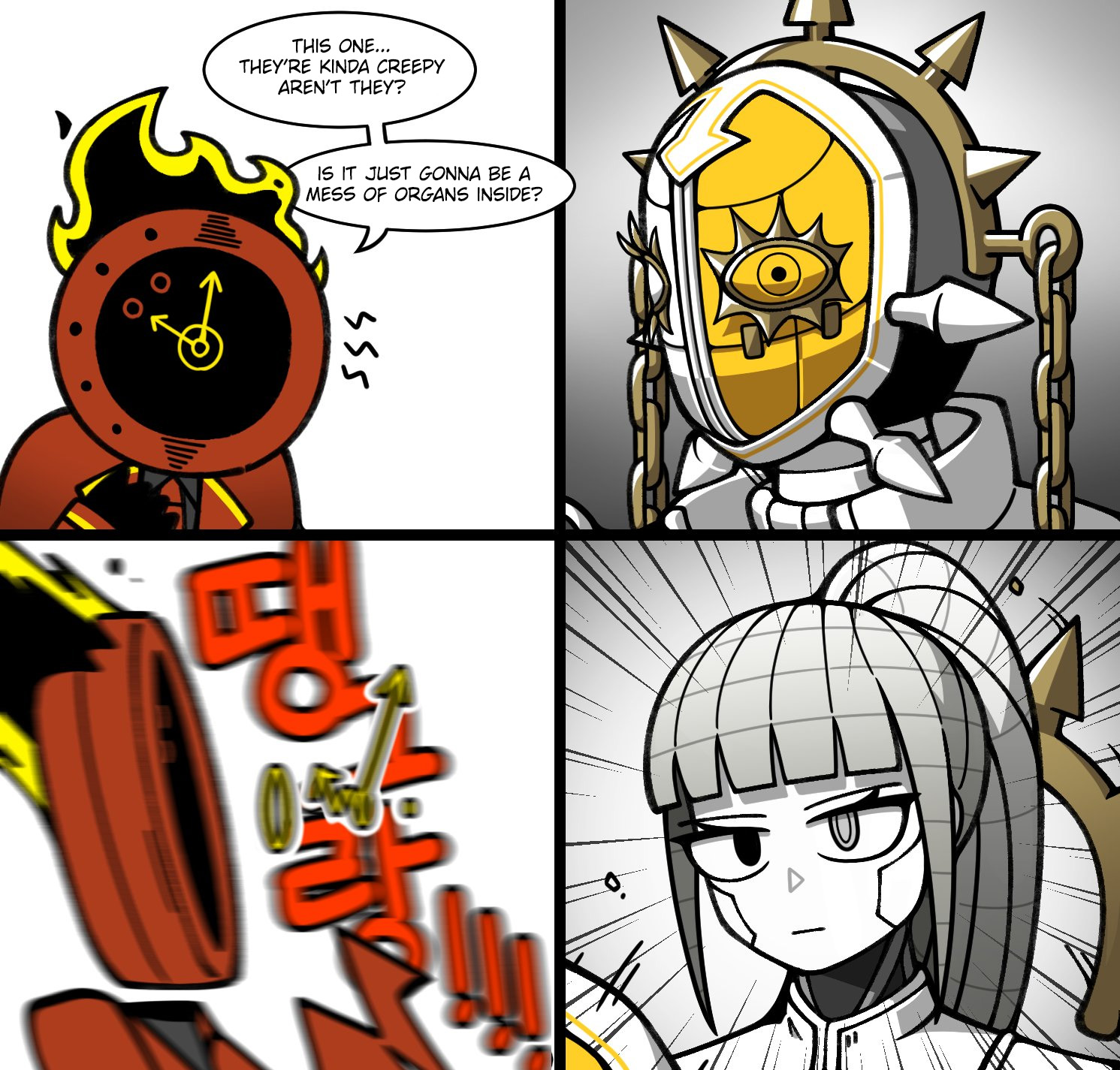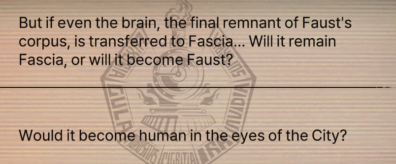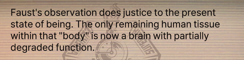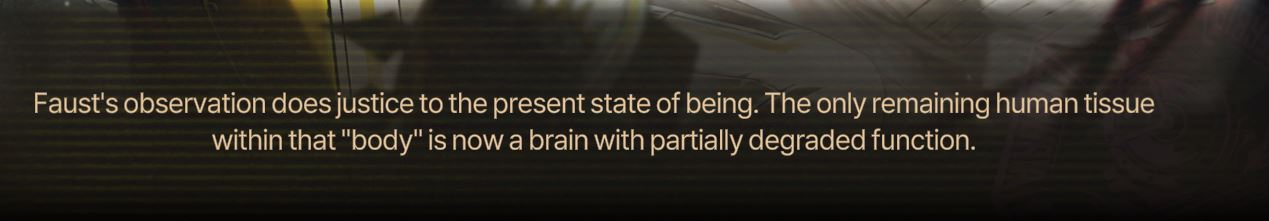 >Faubina's voice is muffled behind her iron maidenThat's a funny little detail.
