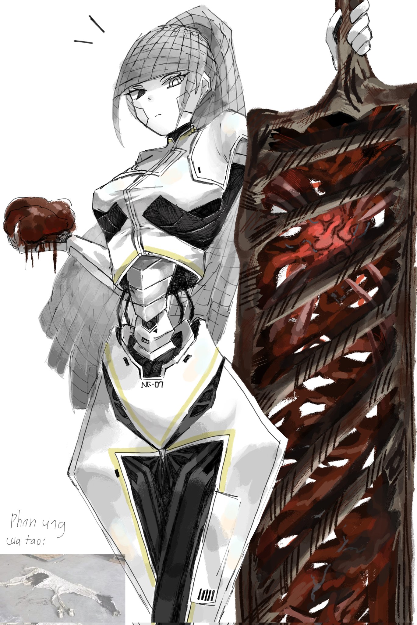 >>563028000People with full body prosthetics don't need to eat but varied by model do need to replenish their brain fluid and charge the body itself.Fascia canonically has a digestive system so she does eat in some sense not just absorb gore into herself. Which leads to the worrying conclusion that the sword poops.