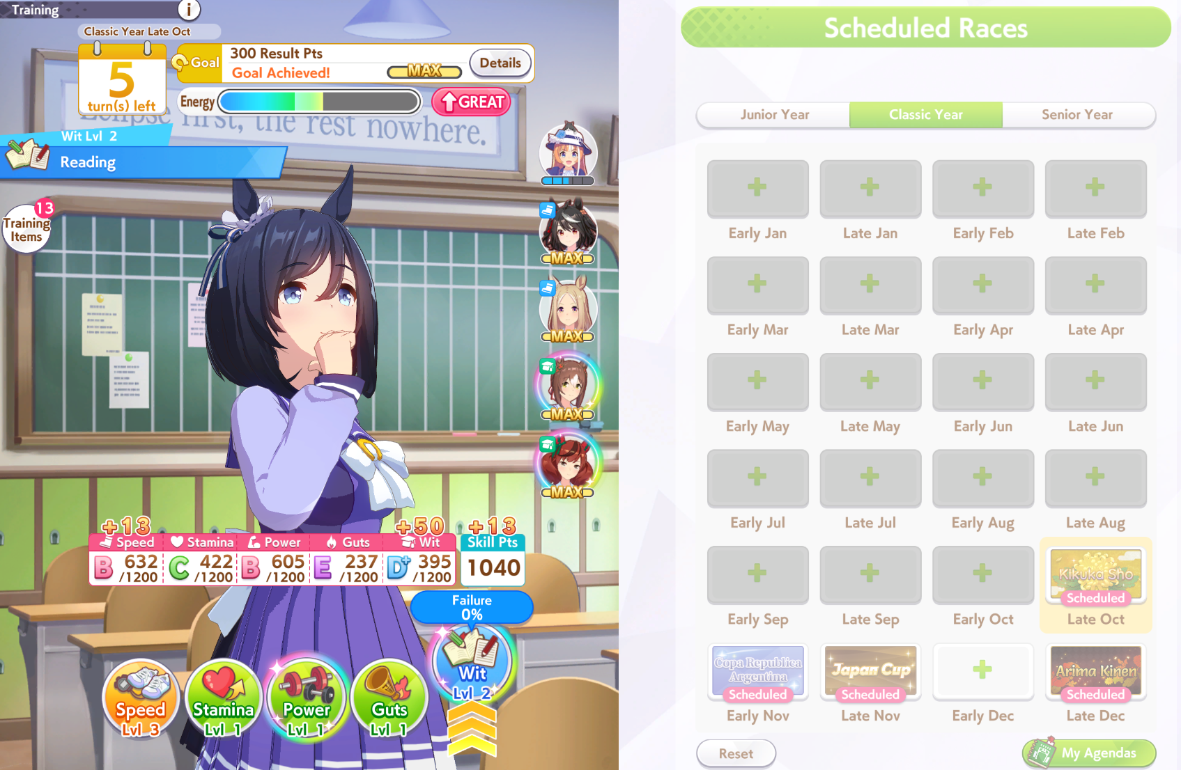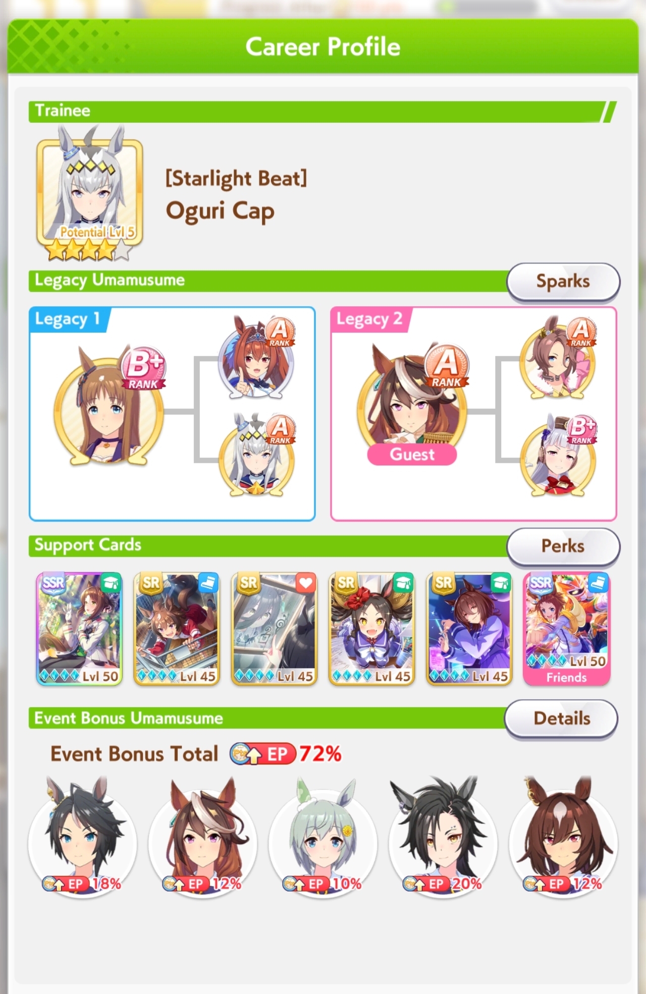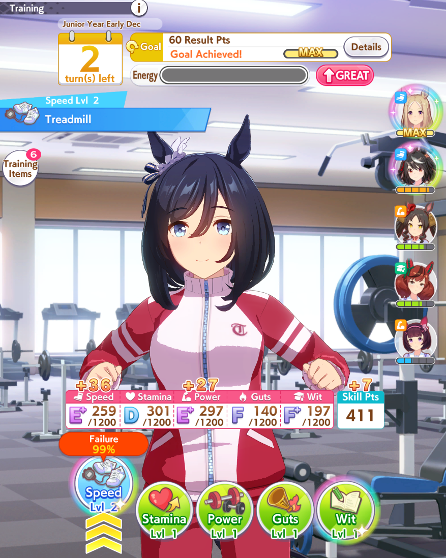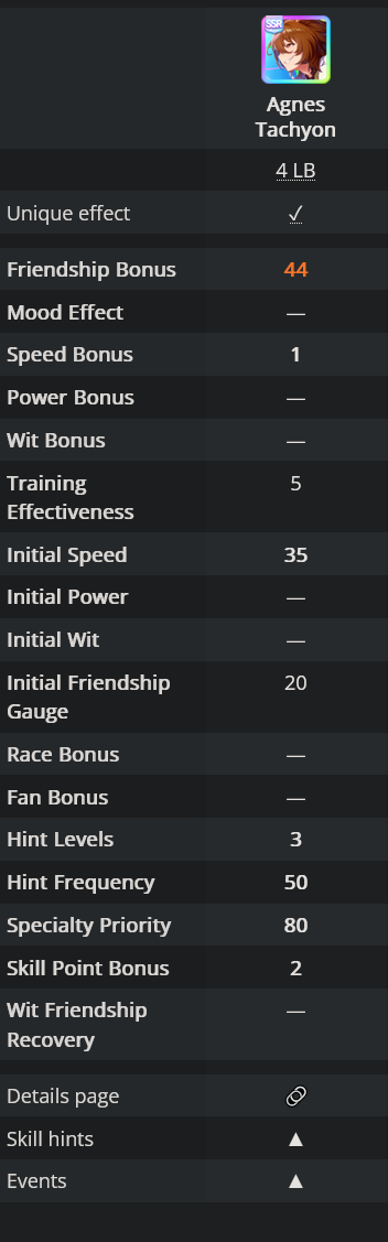 >>563037914>i have but i thought maxxing out is important since she only has 15%I don't think I understand what you meant by thisYou thought Topro 15% fan bonus doesn't apply until you get the fans? That is for her TE, if that is the caseAnyways, you are probably better borrowing Fukukitaru for more consistent wins, and she also has 15% fan bonusesThis agenda is a bit packed but you mostly want to do the G1's and G2's
