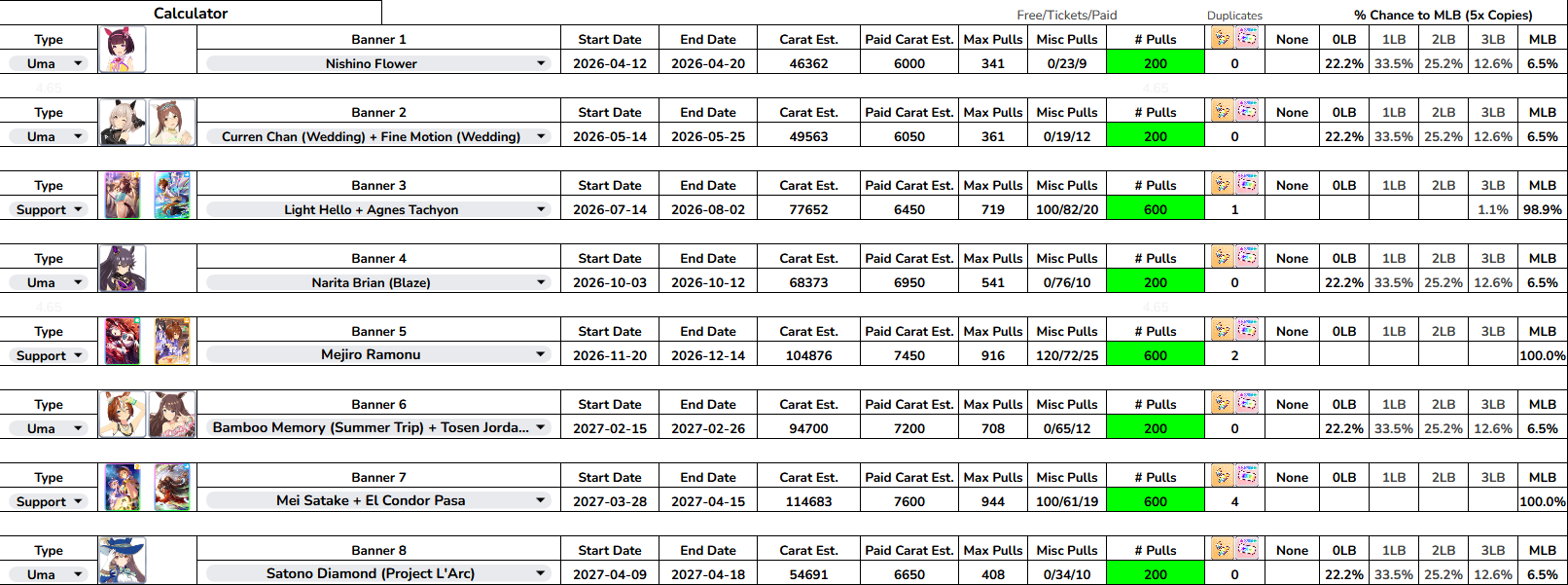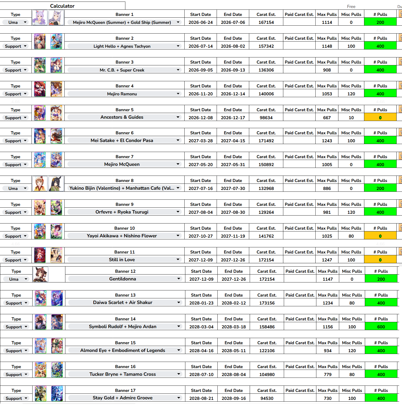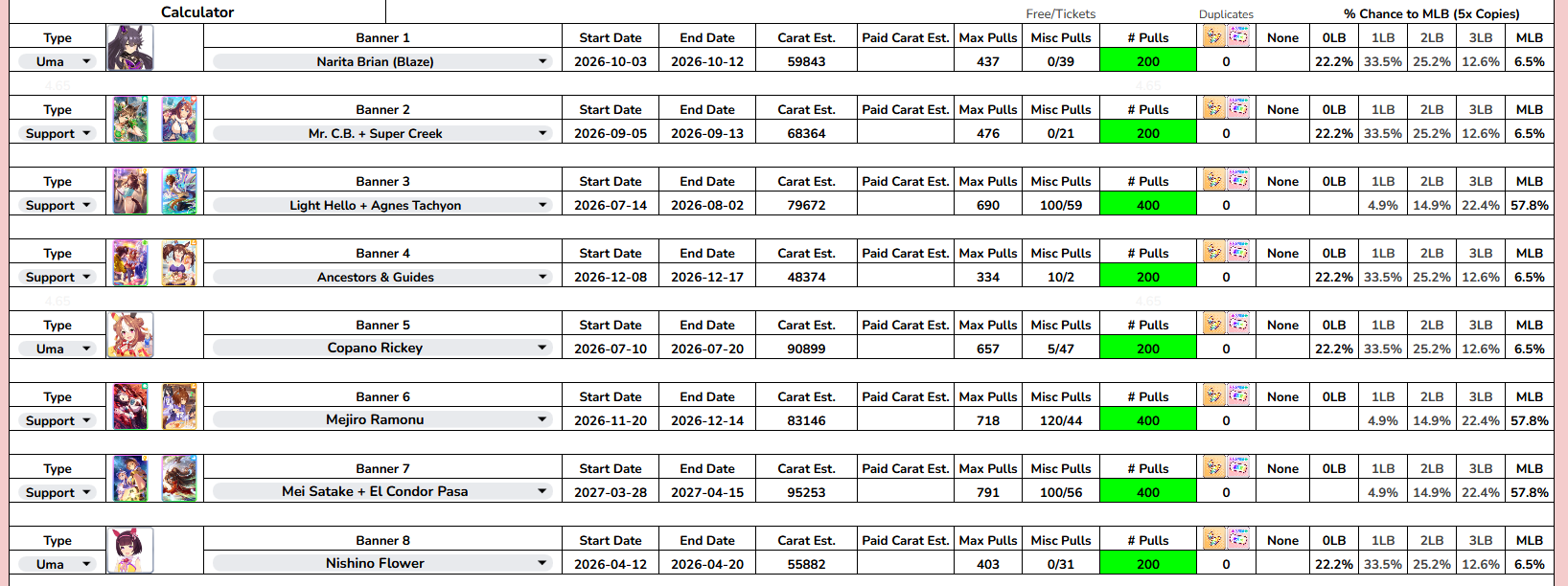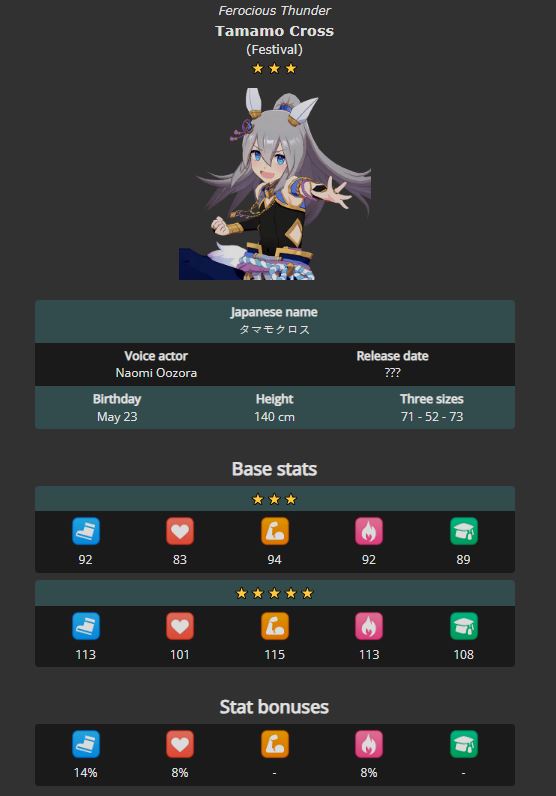 Previous: >>563022874>Global Game NewsLink your account to Cygames iDCurrent Scenario: Make A New Track aka "Trackblazer"Current Rate Up Trainee: Ballroom Seiun Sky (3*), Ballroom Fuji Kiseki (3*)Current Rate Up Support Cards: SSR Symboli Rudolf (STA), SSR Sirius Symboli (WIT)Current CM: Aries Cup - Nakayama Turf 2000mCurrent Event: Ligne Droite Story Event>Schedule03/02 - 04/14 - Halved TP Cost & 2x Career Mode Rewards04/12 - Nishino Flower (3*), Daiwa Scarlet (SSR), Sweepy (SR)04/20 - Yaeno Muteki (3*), Ines Fujin (SSR), Twin Turbo (SSR)04/20 - Aries Cup - Medium/Right/Spring/Firm/200004/26 - Golshi Week Celebration04/26 - Cheerleader Nice Nature (3*), Cheerleader King Halo (3*), Bamboo Memory (SSR), Seeking the Pearl (SSR)04/26 - Tracen Cheer Squad Story Event04/30 - Ines Fujin (3*), MR. C.B. (SSR), Tokai Teio (SR)https://pages.snep.pw/uma/anni-skill-changes>JP Game NewsCurrent Rate Up: Sakura Bakushin O (3* alt), North Flight (3* alt), SSR Daring Tact, SSR Daring HeartNew Scenario "Beyond Dreams" releasedTimeline: https://uma.moe/timelineCygames Webstore: https://webstore.cygames.com/en/umamusume_en>Thread Clubshttps://rentry.co/umaglobalclublistYou must be E3 (20k points) to join a circle. Apply with /uma/ or /vg/ in your profile or post ID in the thread.>All Guides & Resourceshttps://rentry.org/uma26Game databasehttps://gametora.com/umamusume (Click the gear to switch between JP / global server info)A basic guide for newfagshttps://rentry.org/umaglobalFind networks if your region is blocked from the game or clienthttps://www.umavpn.topSeiyuu & Concertshttps://rentry.org/umstUmamusume Birthday Calendarhttps://ウマ娘.攻略.tools/events/birthdayUma Texthttps://umareader.idsmile.xyzCustom Stickershttps://schizo.farm/resources/stickers