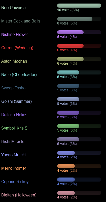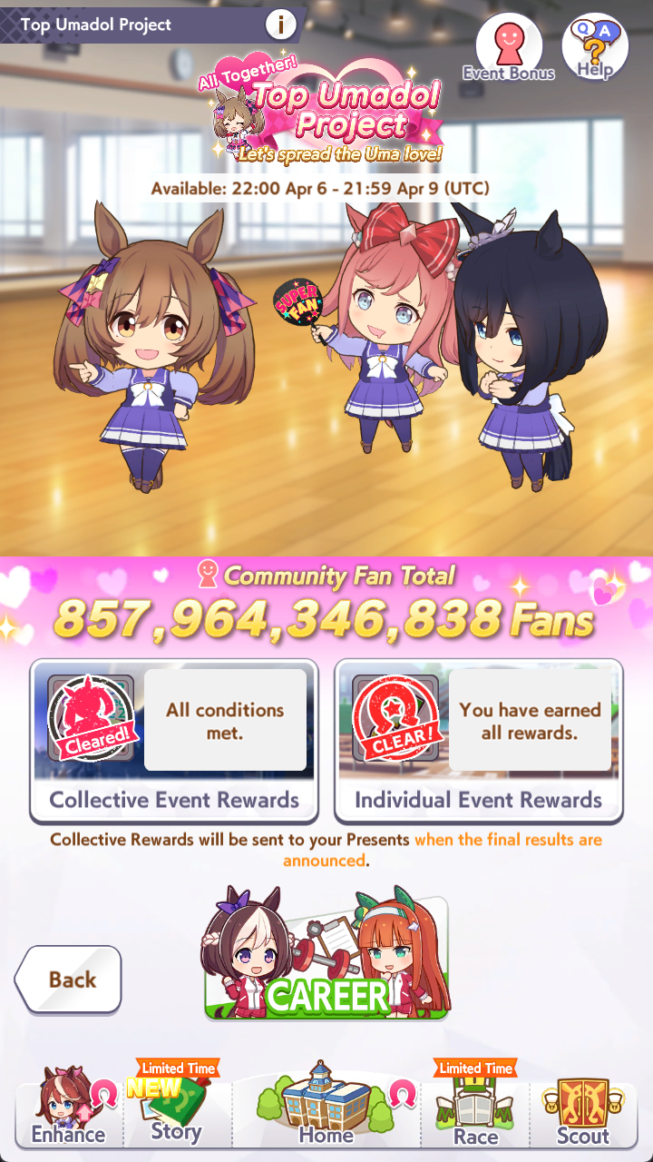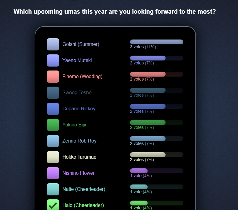 >>563049456>>563049514Thanks anons, guess I'll sit out more in the future then. Think with this cm in particular too there's probably more value in letting more people rotate in and out due to how different comps can affect your umas.