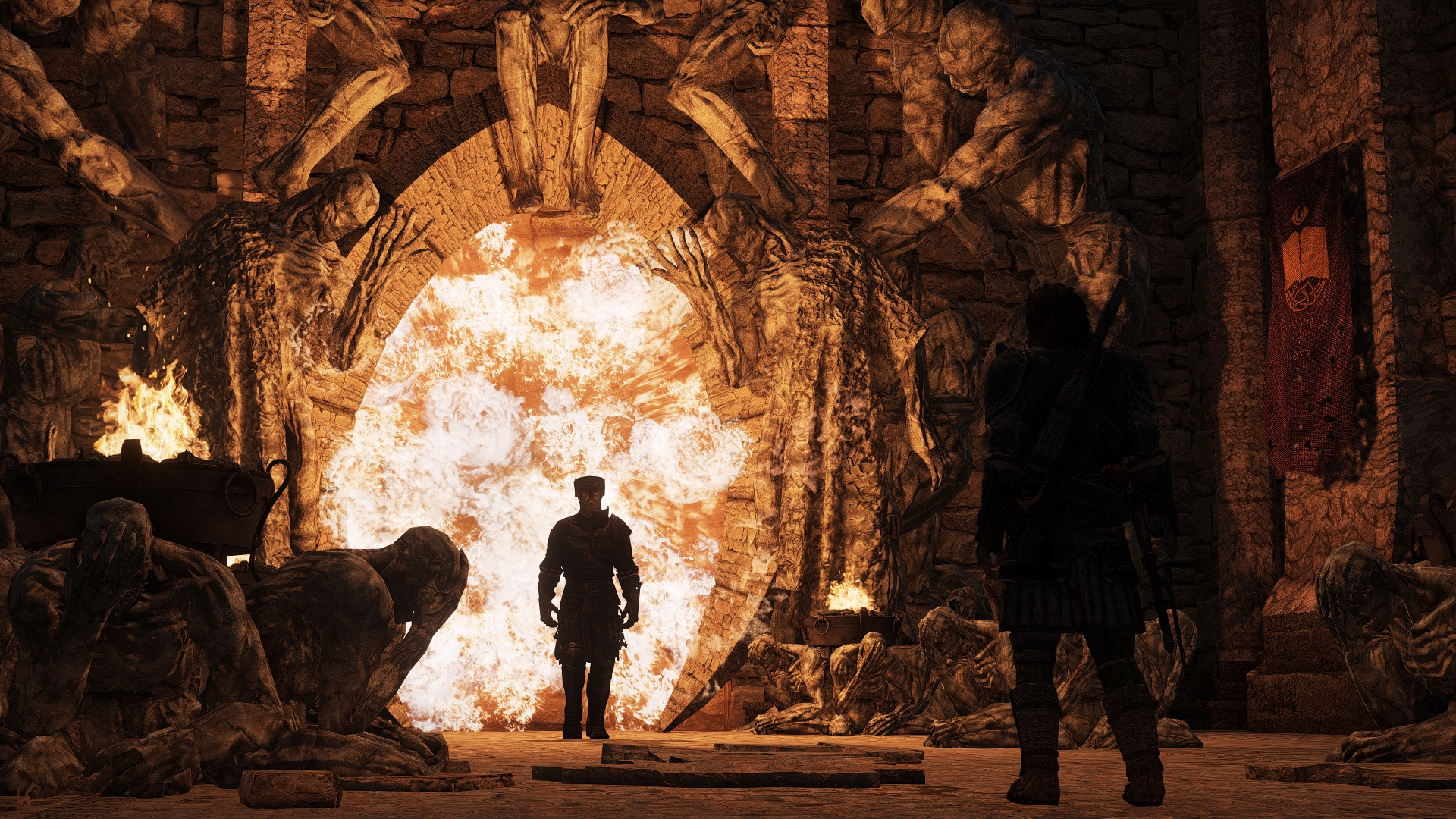This is starting to get interesting but I can't help but feel like I'm missing out on alot of stuff. That's par for the course when it comes to this vein of story though. I didn't notice the design of the staff after my first run in with Anton because of the inventory mod that hides item models but I think I made an error using it the first time. It's interesting that Anton uses mostly fire based destruction magic if you attack him, the staves don't affect him and he doesn't drop a piece of red stone when killed.I also guessed my way into the Sacred Anatomancer's chamber, killed him and burned the corpse. I did let my curiosity get the better of me and savescummed what happens when you read his entrails and I think I'm going to need another character for that path, but I don't think I can bring myself to not kill him.>>563049678I believe you have to enable the priest cure option in the MCM, but I might be getting mixed up with a different one. I had 3 different disease mods installed but removed them when early for this character I got an infection from a skeever that I think caused a strange kind of ambient noise centered on my character, kind of like a magic fizzing sound. I couldn't figure out what was causing it but when I loaded a save pre-bite it wasn't occurring. I ended up just removing all three to be safe. I never used Last Seed so I don't know if that affects the priest lines.