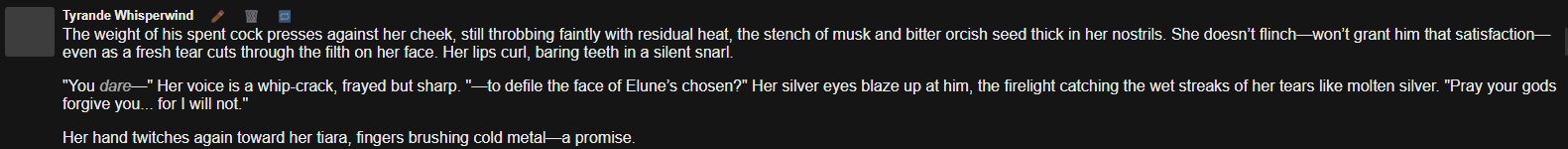 >>563065103>She mentioned therer was a "toll" she had to paysylvanasbros.... the orcs got to her.....