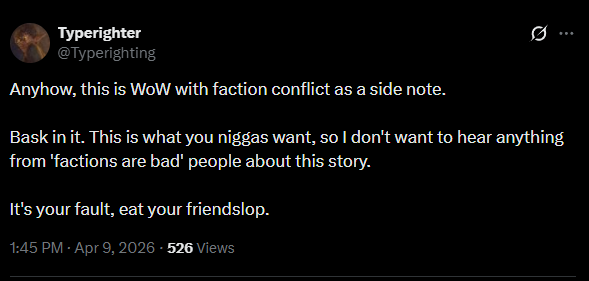 >add a zone to dismount people at the crafting tables in midnight>they just go to tww to sit and simultaneously refresh the table while the ah is upthis game is like watching retards run a retard daycare