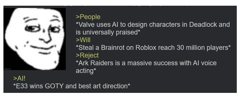 If AI didn't exist I'd probably be YandereDev tier right now.