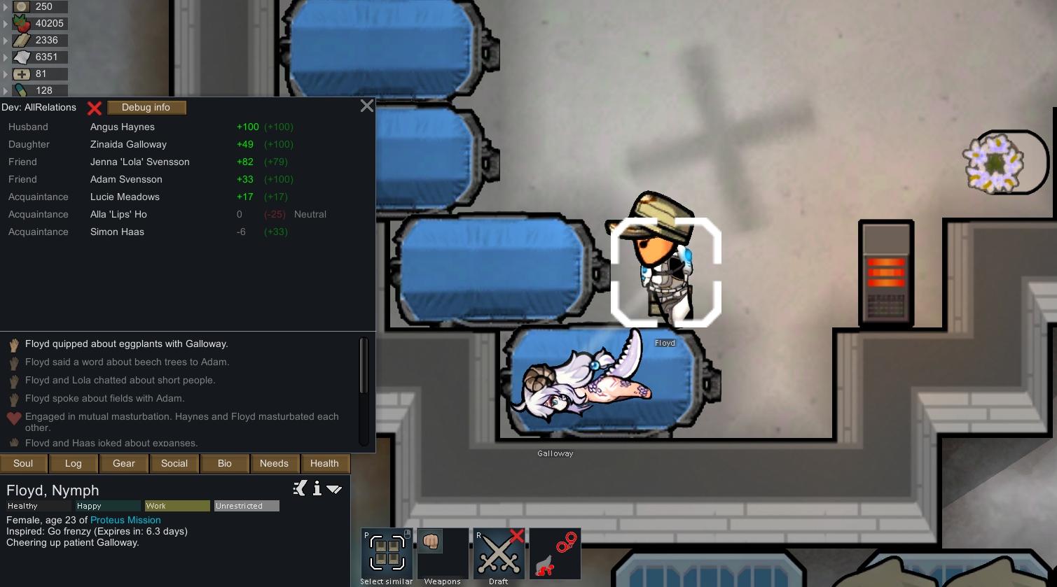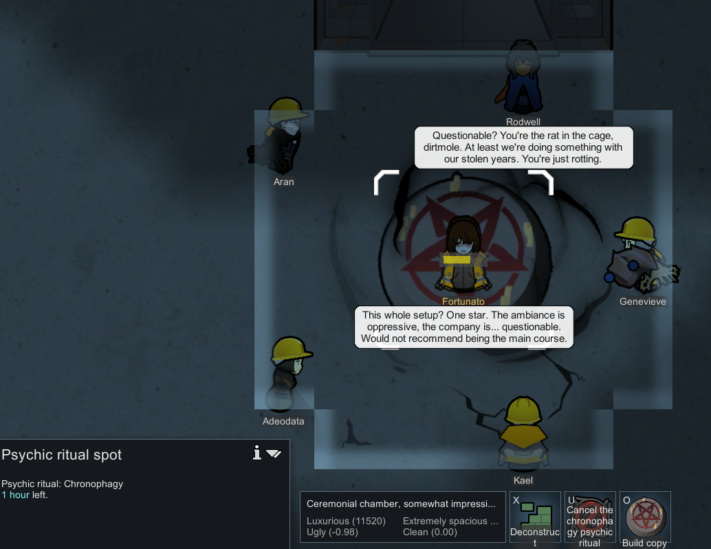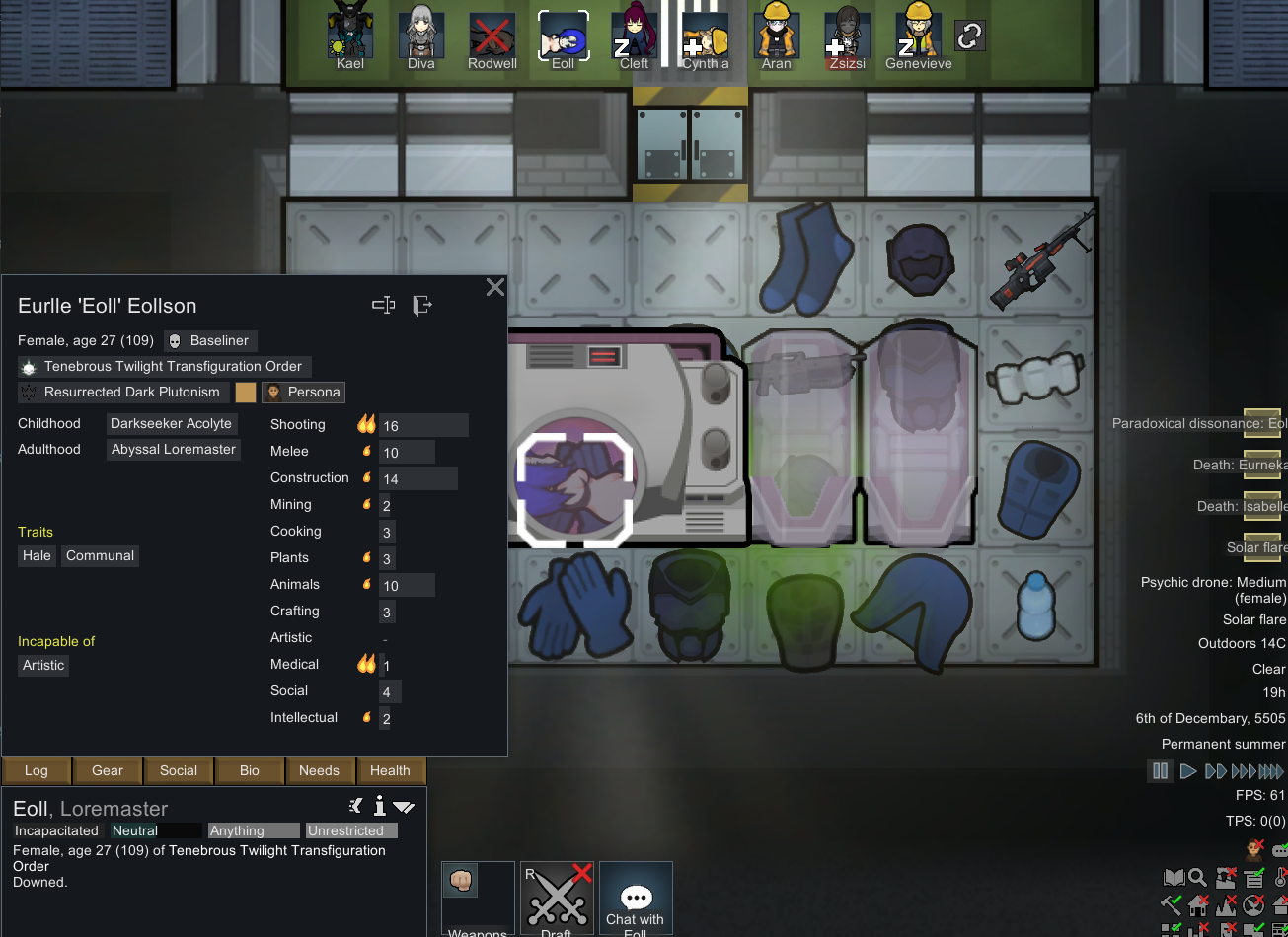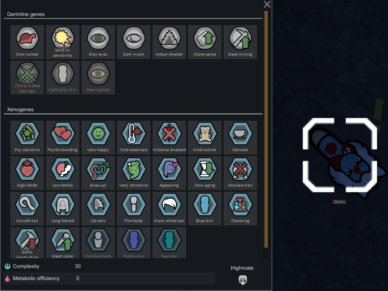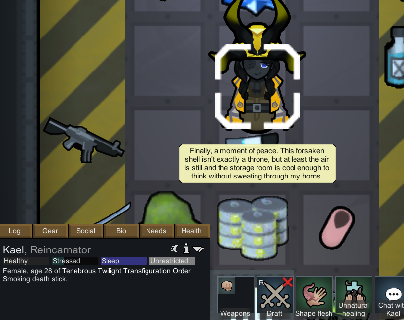 On my previous run before this run, he spent 18 years just slowly building up his repertoire of gains, even if it's just 1 gene being added, a new archotech prosthetics to install, etc. I had to end that save via the Void Monolith ending and take the void touched to further push his limits. Did the Archnexus ending then grabbed that mod that allows you to meet a colonist of your choice via events and it was funny to see him sleeping in a cryptocasket.