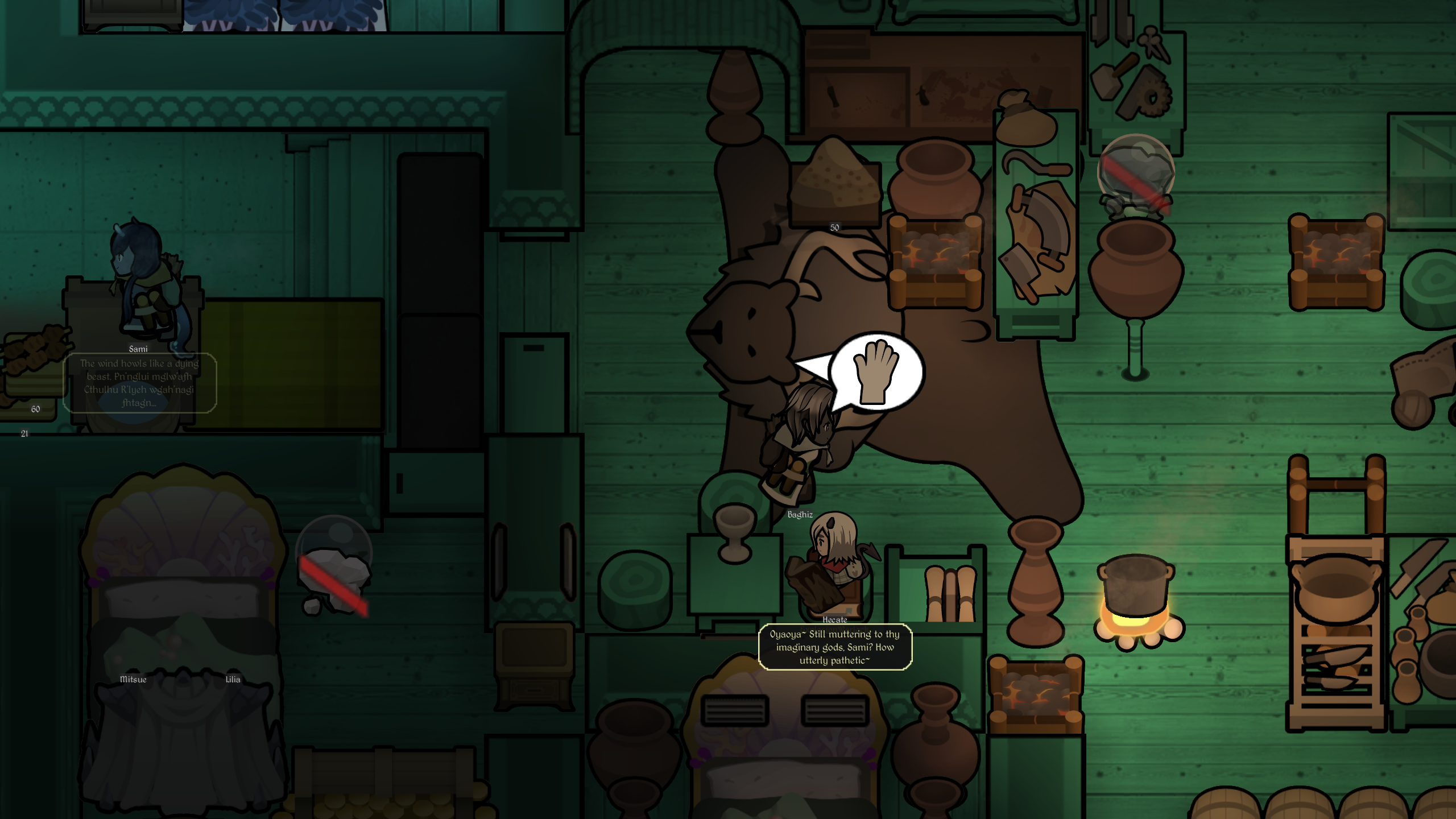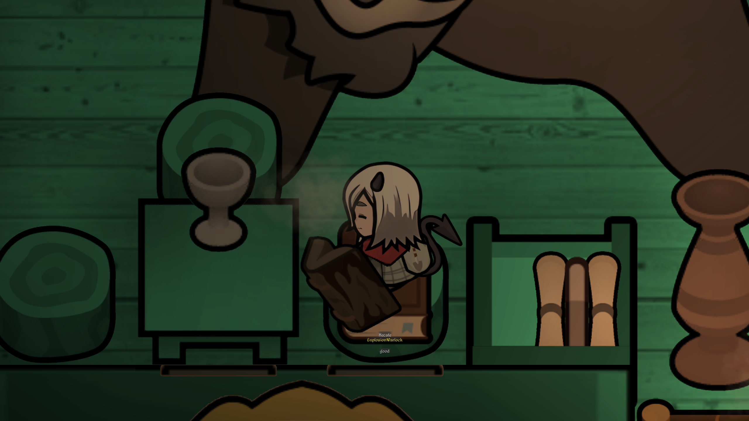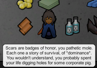 >hulking tribal grug living in a tent rescues and tends your wounds.