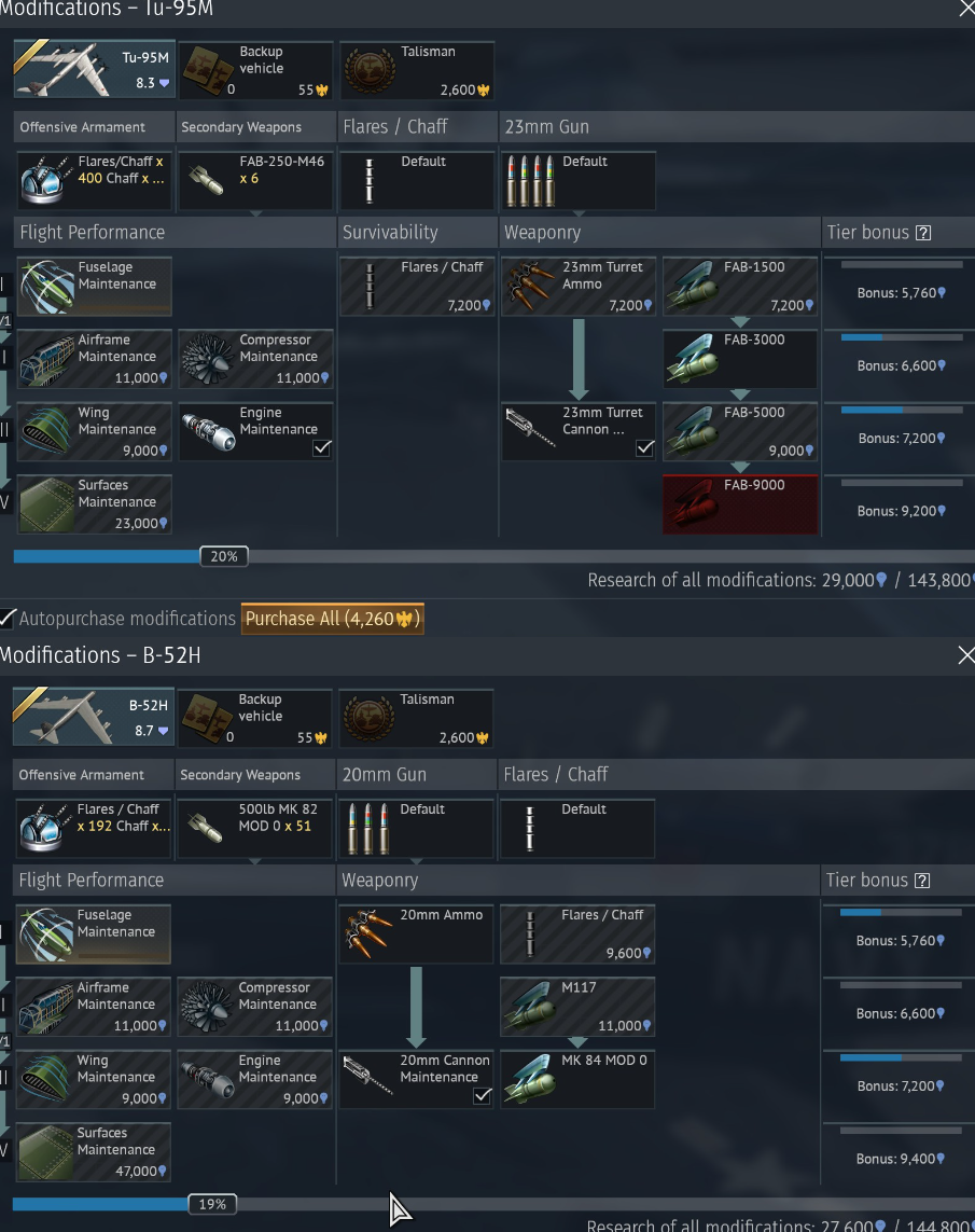 I appreciate both bombers having 5 trillion chaffs but there's no radar missile planes at their br. Let us pack 10 billion flares instead....