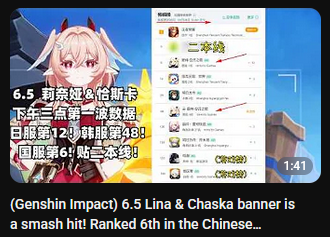 >>563091715>by what metrics was she a success?Tencent officially released that WuWa made ~$570 from Jan to July 2025 which is about ~80m per month and extrapolating is ~960m in total year>Mihoyo paid ~$2.2m taxes in the past 5 years since genshin released and speculation is their total revenue was ~$25-26B>This most popular CN data analyst has been doing this for the past 5 years and these are his numbersgacha games yearly revenue for 2025>Genshin Impact $3.145B>Honkai Star Rail $2.339B>Zenless Zone Zero $1.223B>Wuthering Waves $965MAs you can see is that WuWa made the same as what Tencent released so he's very reliable and also total Mihoyo revenue is ~$6.5B which goes in line with their total revenue for the past 5 years.Here are this VERY RELIABLE chinese analyst's numbers>Mavuika 4.08B yuan>$592M>Skirk 2.85B yuan>$414M>Columbina 2.78B yuan>403M>Phainon 2.78B yuan>403M>Castorice 2.7B yuan>$392M>Cyrene 2.189B yuan>$318MMavuika is a gigantic success.