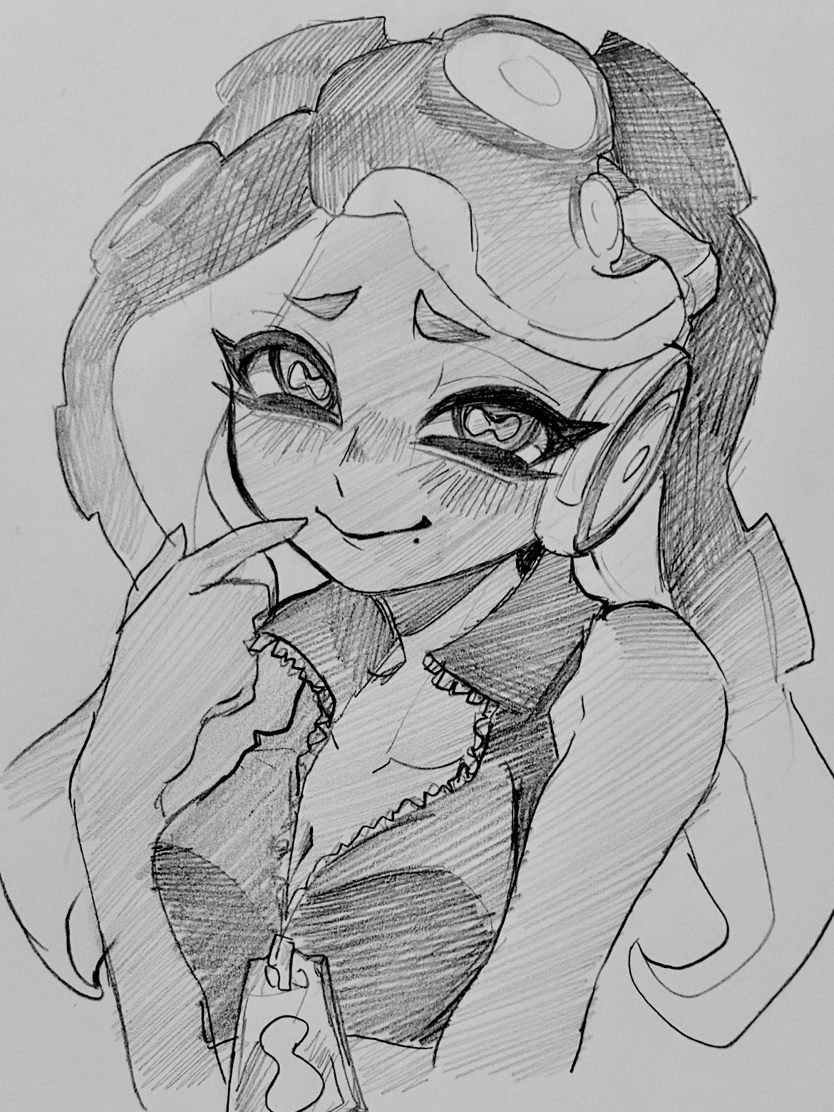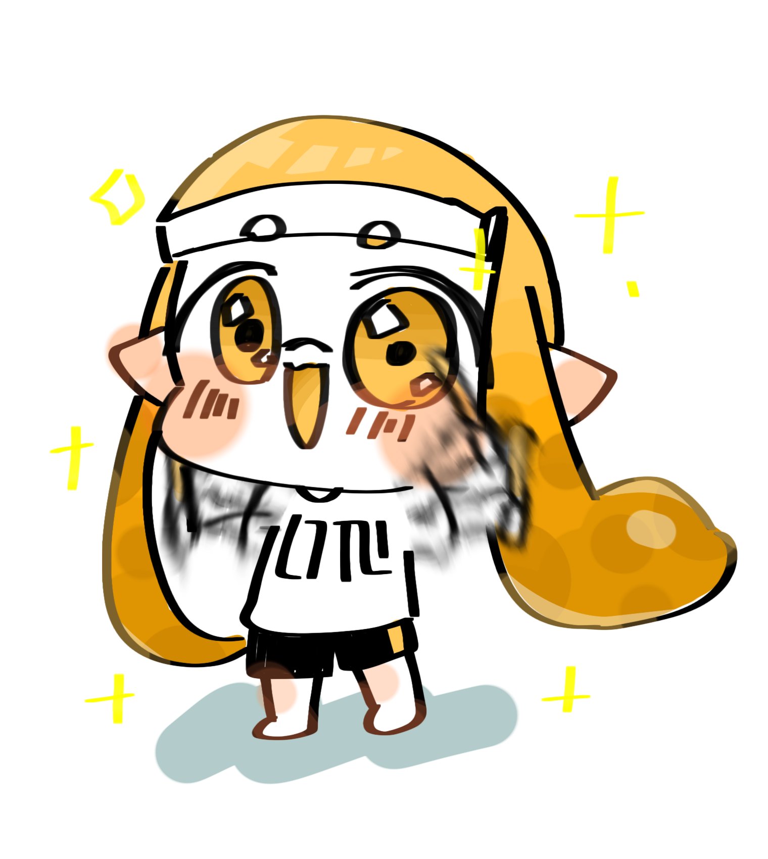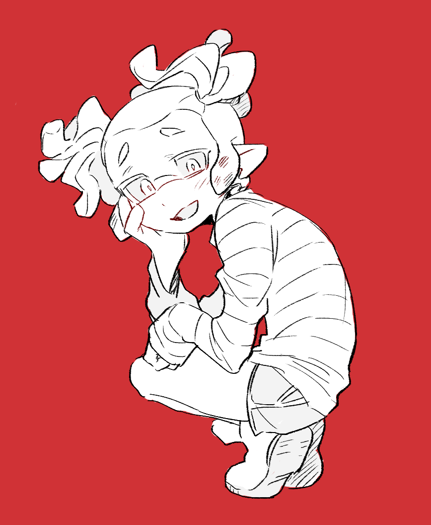 >>563245816>splatoon_(series), inkling, inkling_girl, 1girl, english, monochrome, bad_id, shirt, smile, short_hair, socks, shoes, eyes_closed,>Unapproved in three days