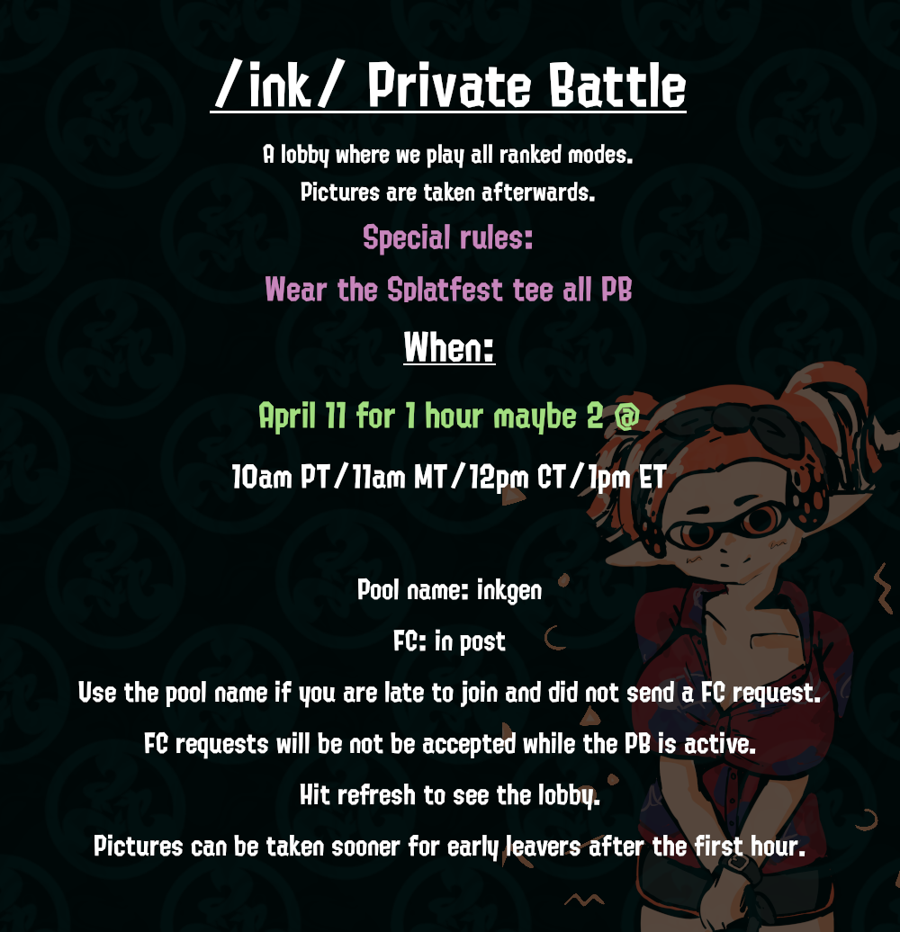 Previous: >>562889559Official: https://splatoon.nintendo.com/Base: https://www.nintendo.co.jp/character/splatoon/en/Wiki: http://splatoonwiki.org/Booru: https://booru.inkgen.moeBuild analyzer: https://sendou.inkPool code: inkgen>News• Splatfest: Baby Chicks vs Li'l Bunnies vs Bear Cubs - 4/10-4/12• Version 11.0.0 patch notes: https://en-americas-support.nintendo.com/app/answers/detail/a_id/59461/~/how-to-update-splatoon-3#v1100• Splatoon Raiders trailer - https://x.com/SplatoonNA/status/1932422840797524219• Fresh Season is on until 5/30>Media Accountshttps://x.com/SplatoonNAhttps://x.com/SplatoonJPhttps://x.com/SplatoonEU>Map Schedules and Seed Checkerhttps://splatoon3.ink/https://leanny.github.io/splat3seedchecker/#/>Gear, Weapons, and Collectableshttps://leanny.github.io/splat3/catalog.htmlhttps://leanny.github.io/splat3/database.htmlhttps://leanny.github.io/splat3/collectibles.htmlhttps://leanny.github.io/splat3/coop.html