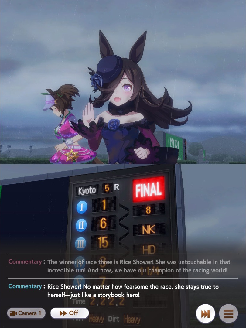 >>563133586>>563133627>>563133660>>563133671>>563133716Thanks for the replies. That's unfortunate as I don't like building debuffers. Anyway, the result of the second room was a lot more promising as my Fuji almost won. I don't know how the XOguri pulled ahead as she has significantly less speed than my ace. I see that she has a lot more skills, but I'm still surprised that she managed to catch my Fuji at the very end of the final straight and just barely pull ahead.