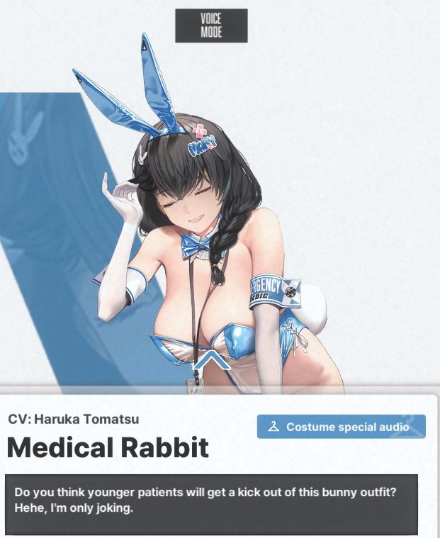 A dentist nikke from a dentist squad and she'd be called Deni and her other squadmate would be called Triss like how Elegg Trony sounds vaguely like electronics.