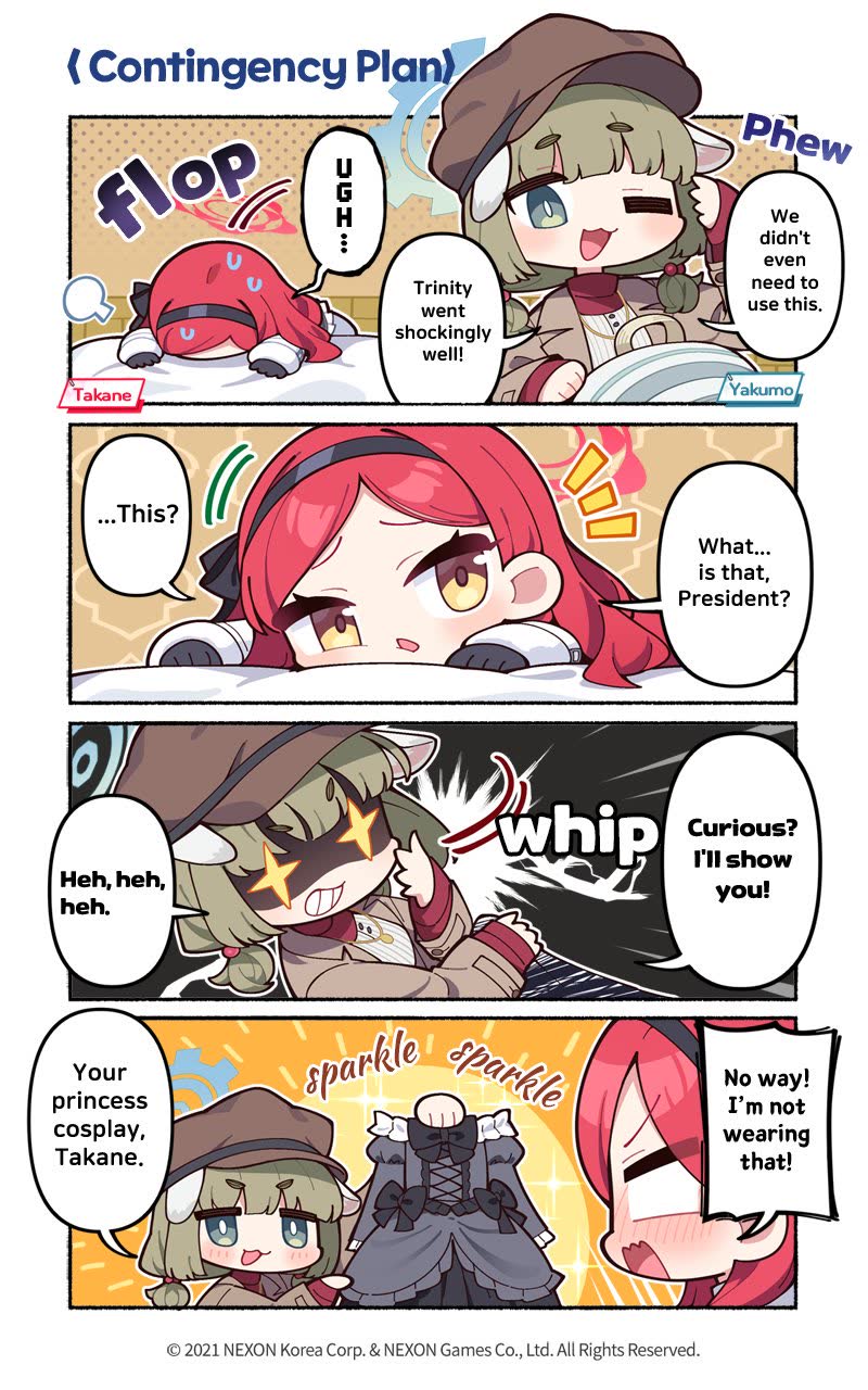 Previous Thread: >>563083103>Guides, Resources and useful links:https://rentry.org/bagguides>/bag/Circles/Clubs/Friends:https://rentry.org/holdingthebag>4koma, Manga, Side Content, PVs & Shortshttps://rentry.org/bacontent>>(JP) – JST>Banners:>4/1 After Maint – 4/15 10:59Akane (School)Seia (Limited)Asuna (School – Limited)Karin (School – Welfare)Toki (Bunny)>News:Patch notes: https://bluearchive.jp/news/newsJump/645>Events:Code: BOX - The Shadow Approaching Millennium – 4/1 After Maint – 4/15 10:59Balancing Schale's Books with the General Student Council – 4/15 11:00 – 4/21 10:59>Content:Grand Assault: Perorodzilla (Field – Torment w/Heavy & Special Armor) – 4/8 11:00 – 4/15 3:59Limit Break Assault: Tiphareth (Indoor – w/Elastic Armor) – 3/19 11:00 – 4/21 3:592x Hard – 4/8 4:00 – 4/15 3:592x Commissions/Bounty – 4/15 4:00 – 4/21 3:59>>(GLOBAL) – UTC>Banners:>4/7 After Maint – 4/21 1:59TakaneYakumoMeru, MomijiMinoriShigure (Hot Spring)Serika (Swimsuit)>News:Patch notes: https://forum.nexon.com/bluearchive-en/board_view?thread=3415801>Events:Winter Sky's Renaissance: Thesis on Cultural Exchange – 4/7 After Maint – 4/21 1:59My Office: https://bluearchive.nexon.com/user/myoffice>Content:Total Assault: Kurokage (Urban) – 4/7 After Maint – 4/13 18:59Joint Firing Drill (Breakthrough) – 4/14 2:00 – 4/20 18:59Limit Break Assault: Chokmah (Field – w/Heavy Armor) – 4/8 2:00 – 4/27 18:592x Bounty – 4/6 19:00 – 4/13 18:592x Account EXP – 4/10 19:00 – 4/12 18:592x Normal/Hard – 4/13 19:00 – 4/20 18:592x Account EXP – 4/17 19:00 – 4/19 18:592x Lesson/Scrimmage – 4/20 19:00 – 4/27 18:592x Bounty – 4/27 19:00 – 5/4 18:59