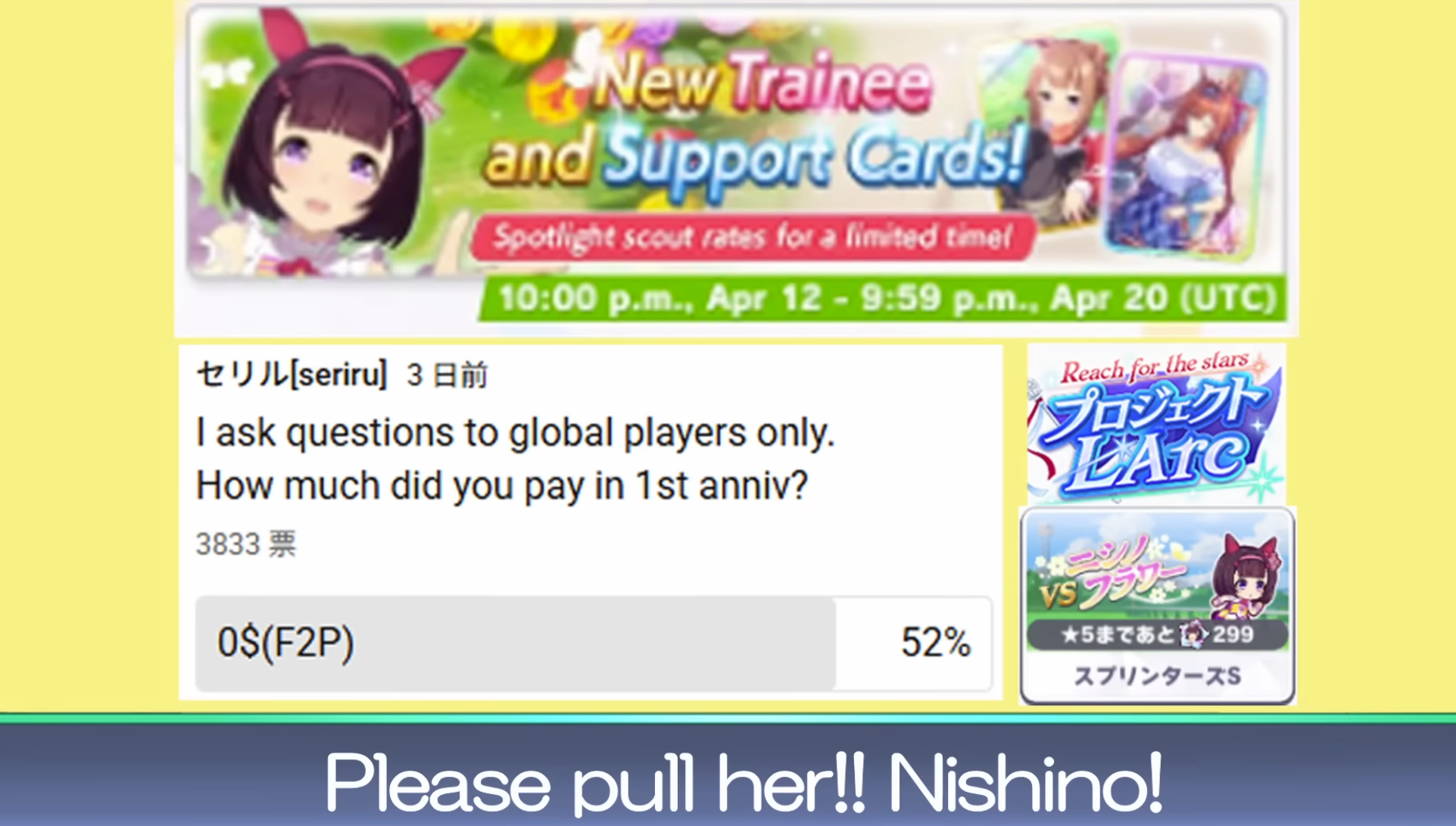 04/12 - Nishino Flower (3*), Daiwa Scarlet (SSR), Sweepy (SR)