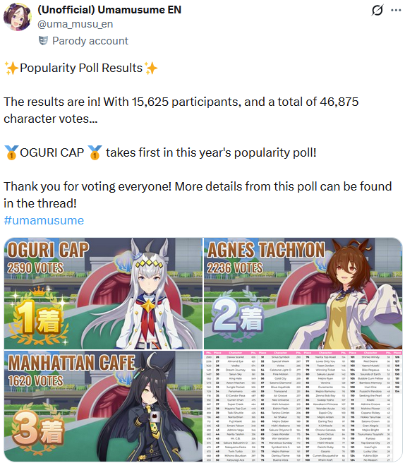 What's surprising is that Creek and Tamamo didn't get much of a CinGrey bump, since Oguri won.