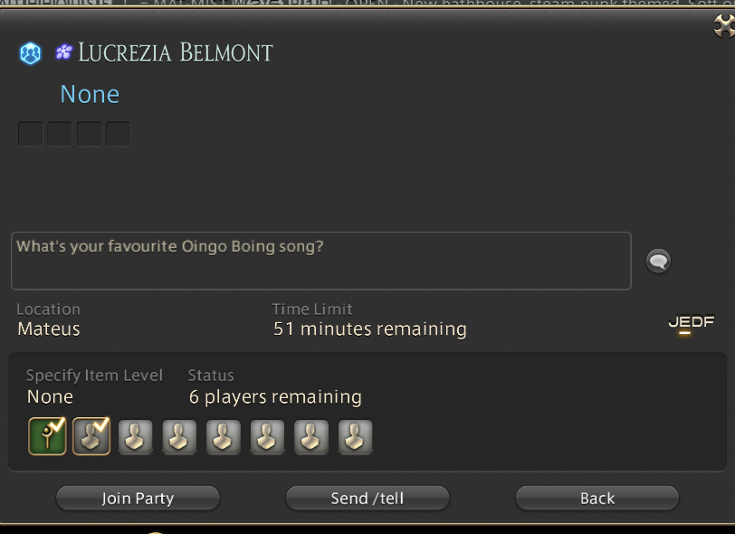 anyone interested in doing things in some sort of way perhaps even getting amongst it or clearing various things of that nature that potentially pertain to objectives achievable within final fantasy fourteen the em em o