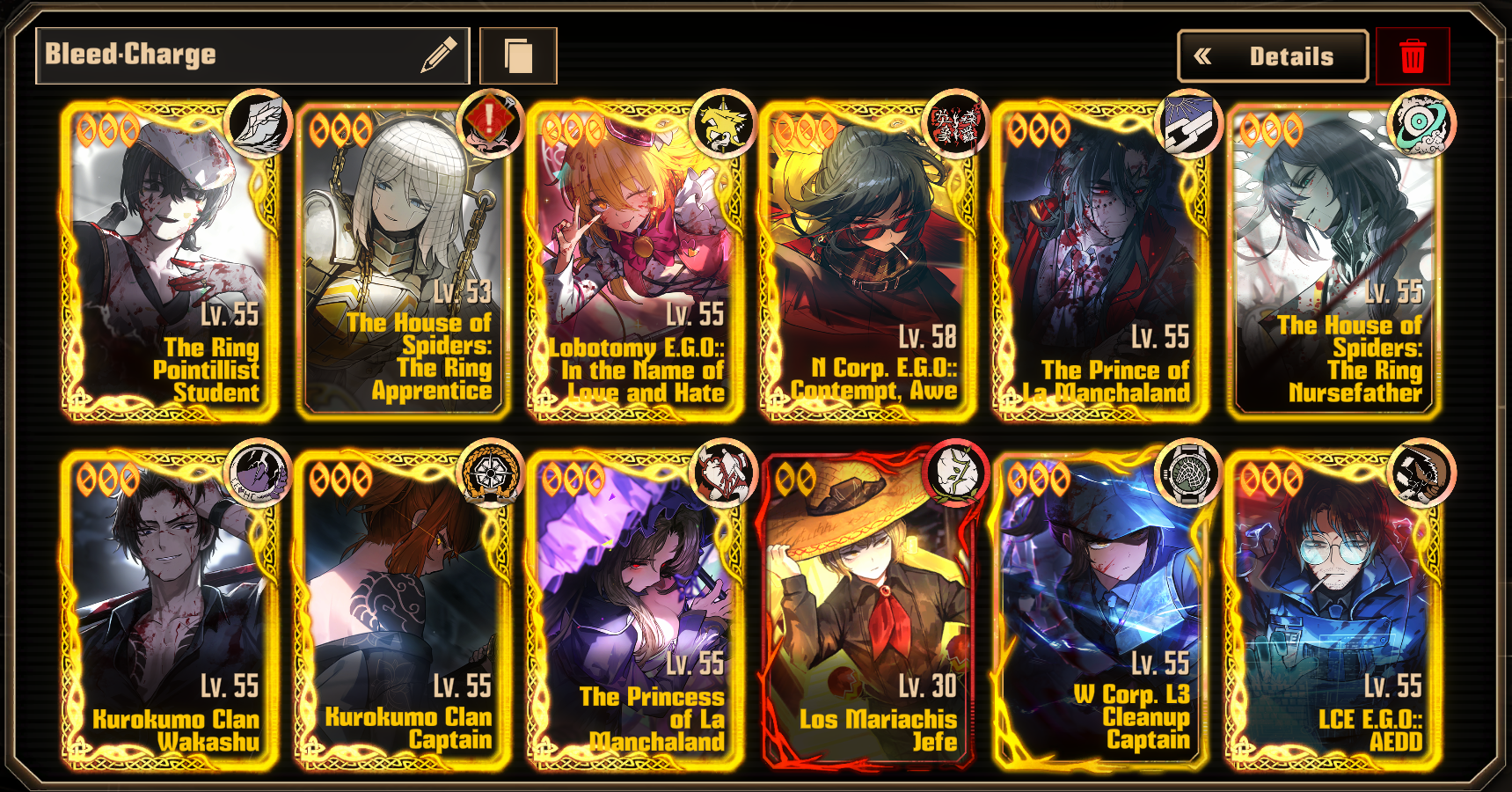 >>563170982Nah, it's 4 GOOD Ring IDs which will accelerate Hong's S3-2 plus Rodion is another AOE to throw onto the pile, will likely synergize highly with Meursault too. Yi Sang will scale highly with all of them, and Hohengreg is Ring Hong and Faust's charge bitch + another AOE. Only in story mode could you consider dropping Rcorp Heathcliff for Manager Don or KK Ishmael/Heathcliff. In Story mode you could drop Penitence Shu and Rabbit Heathcliff for KK Ishmael and Heathcliff instead. Pretty good team with bleed count, stacked debuff infliction, and team AOEs.>Ring Hong>Ring Faust>Ring Rodion>Ring Meursault>Penitence Shu////KK Ishmael>Hohengreg>Rabbit Heathcliff///KK HeathcliffIdeal team.
