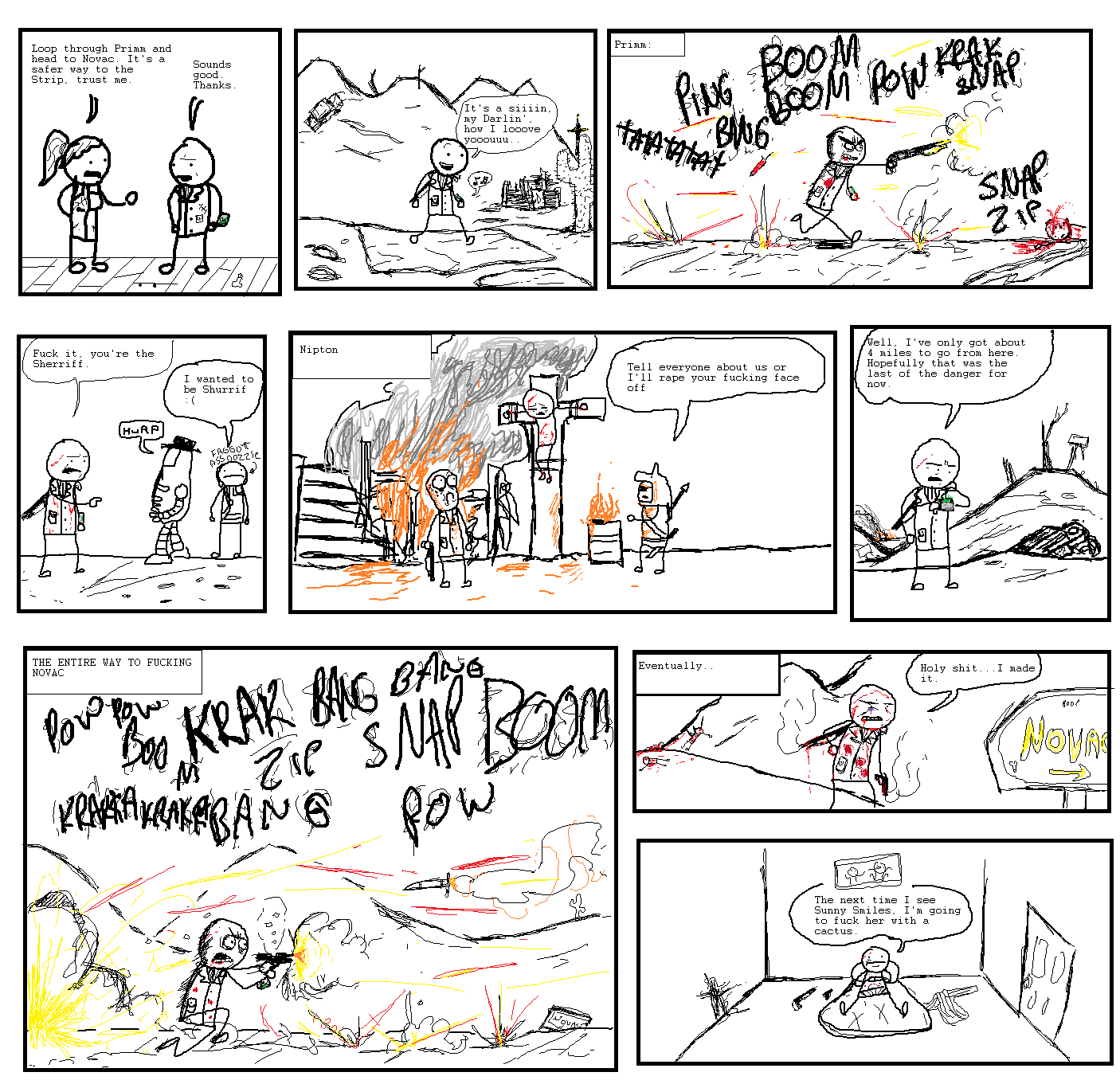 I think the solution to the Fallout question is that everyone smokes crack. There would be no wars if everyone smoked crack.
