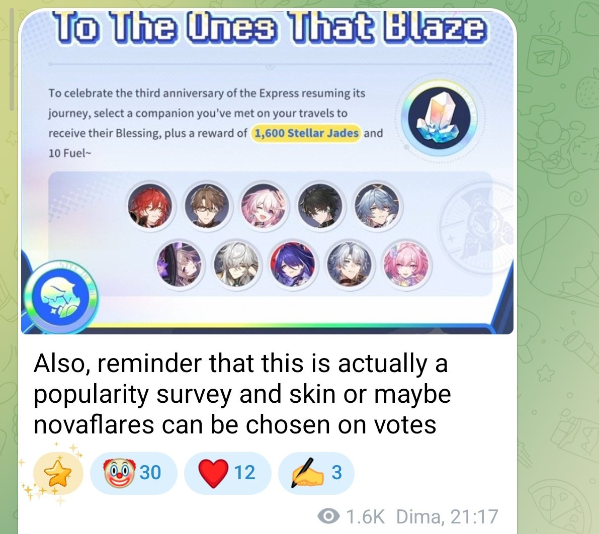 They actually sneaked a new Firefly skin in too.Firefly and Kafka SP are basically confirmed.>>563182874Phainon is right there, anon. She ain't gonna win shit lmao.