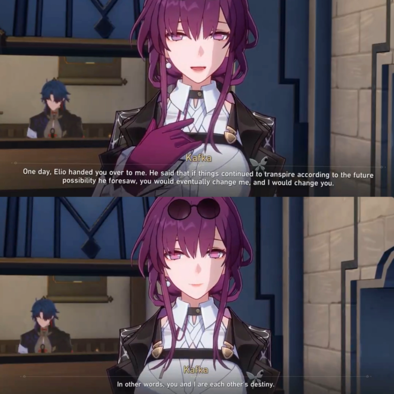 >>563188603But that is her personality. She basically doesn't interact with the other heirs at all, only with TB. Shaoji even went out of his way to have Cyrene and Phainon (the original btw) not talk to each other. Even Kafka and Firefly interact properly with the other SH and seem to live their own lives. That is why people say Cyrene feels artificial as a waifu push.