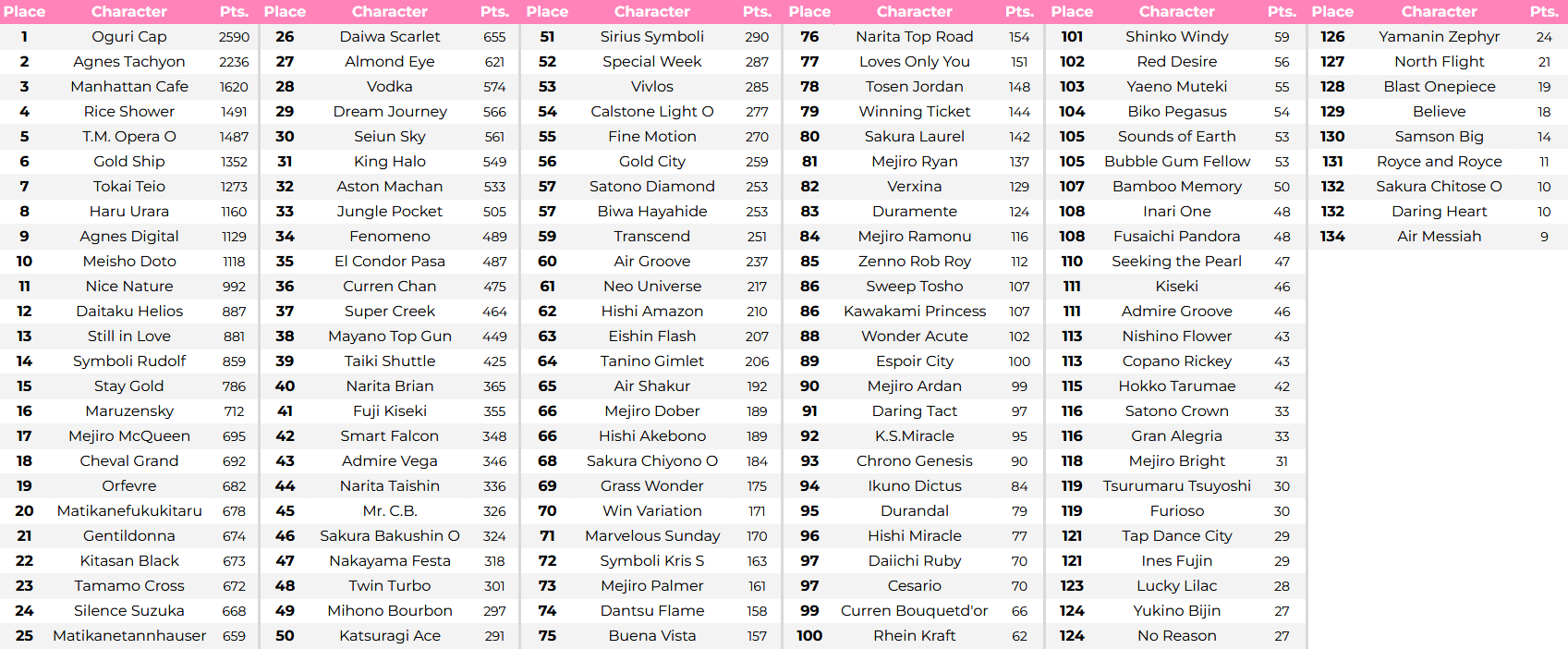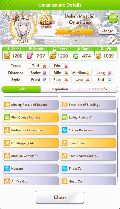 Previous: >>563159412>Global Game NewsLink your account to Cygames iDCurrent Scenario: Make A New Track aka "Trackblazer"Current Rate Up Trainee: Ballroom Seiun Sky (3*), Ballroom Fuji Kiseki (3*)Current Rate Up Support Cards: SSR Symboli Rudolf (STA), SSR Sirius Symboli (WIT)Current CM: Aries Cup - Nakayama Turf 2000mCurrent Event: Ligne Droite Story Event>Schedule03/02 - 04/14 - Halved TP Cost & 2x Career Mode Rewards04/12 - Nishino Flower (3*), Daiwa Scarlet (SSR), Sweepy (SR)04/20 - Yaeno Muteki (3*), Ines Fujin (SSR), Twin Turbo (SSR)04/20 - Aries Cup - Medium/Right/Spring/Firm/200004/26 - Golshi Week Celebration04/26 - Cheerleader Nice Nature (3*), Cheerleader King Halo (3*), Bamboo Memory (SSR), Seeking the Pearl (SSR)04/26 - Tracen Cheer Squad Story Event04/30 - Ines Fujin (3*), MR. C.B. (SSR), Tokai Teio (SR)https://pages.snep.pw/uma/anni-skill-changes>JP Game NewsCurrent Rate Up: Lucky Lilac (3*), SSR Aston Machan, SR Hishi AmazonNew Scenario "Beyond Dreams" releasedTimeline: https://uma.moe/timelineCygames Webstore: https://webstore.cygames.com/en/umamusume_en>Thread Clubshttps://rentry.co/umaglobalclublistYou must be E3 (20k points) to join a circle. Apply with /uma/ or /vg/ in your profile or post ID in the thread.>All Guides & Resourceshttps://rentry.org/uma26Game databasehttps://gametora.com/umamusume (Click the gear to switch between JP / global server info)A basic guide for newfagshttps://rentry.org/umaglobalFind networks if your region is blocked from the game or clienthttps://www.umavpn.topSeiyuu & Concertshttps://rentry.org/umstUmamusume Birthday Calendarhttps://ウマ娘.攻略.tools/events/birthdayUma Texthttps://umareader.idsmile.xyzCustom Stickershttps://schizo.farm/resources/stickers