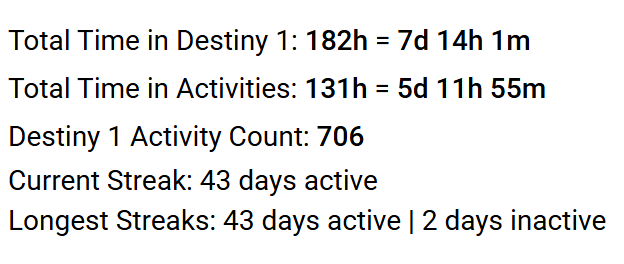 I think it's time to return to Destiny 2 after this two-month break. I need to stop procrastinating on the Equilibrium solo flawless and get ready for Iron Banner.I doubt I'll be able to get a raid group for Epic, but it'd be nice to get the raid catalyst.