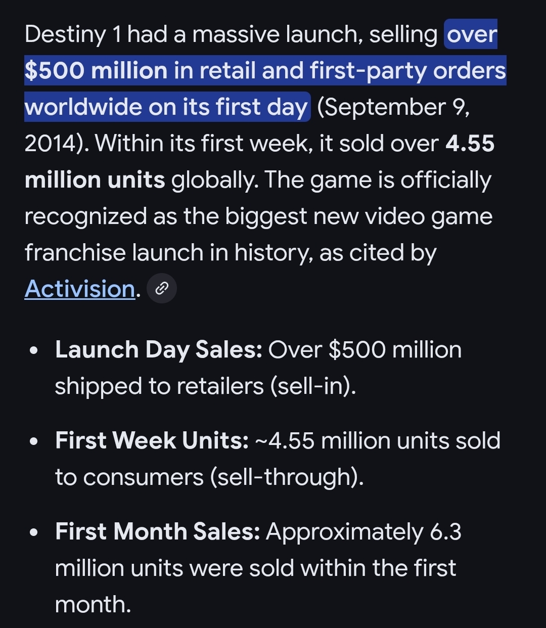 >500m for Destiny>200m for Marathon>Bungie supposedly worth billionsI think governments should start auditing vidya companies, this money could be funding terrorism.