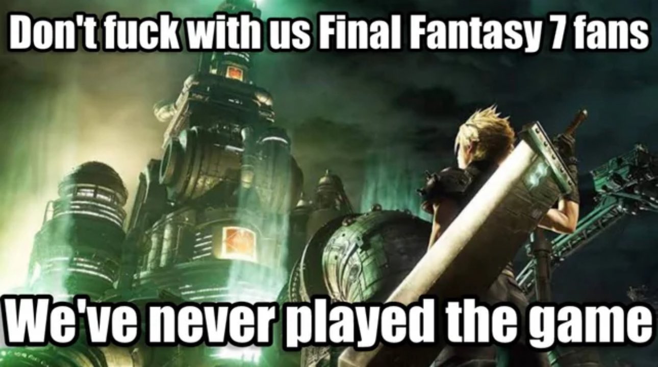 Remember that you can dislike stuff without making it part of your personality. Report and ignore shitposters that only spam and argue in bad faith./ffg/ spam filter: https://pastebin.com/SJ1sb9r0>General Info on Final Fantasyhttps://finalfantasy.fandom.com>What version should I play?http://pastebin.com/nDC7j5bn>Final Fantasy Pixel Remaster Trailerhttps://www.youtube.com/watch?v=XdLsIQEGj-E>Final Fantasy Tactics: The Ivalice Chronicleshttps://youtu.be/JRIElEOQa4c>Final Fantasy XVI Infohttps://na.finalfantasyxvi.com>Launch Trailer "Salvation"https://youtu.be/_CrV3hkJuvs>DLChttps://youtu.be/RecsFD6SWfchttps://youtu.be/aveDvd66clk>PC Trailerhttps://youtu.be/LBqpFlA_4Is>Final Fantasy VII Rebirthhttps://youtu.be/WgdkN2tCAFwhttps://youtu.be/Q56cRDseTGQ>Dissidia Duellum Final Fantasyhttps://youtu.be/dgTNtB9mysshttps://youtu.be/L-UITSfBZpc>Final Fantasy VII Ever Crisis>>>/vmg/1916155>Dissidia Final Fantasy Opera Omniahttps://www.youtube.com/@DFFOperaOmnia>Final Fantasy Brave Exvius: War of the Visionshttps://pastebin.com/1yvynbW8>Final Fantasy XIhttp://www.playonline.com/ff11us/index.shtmlPrevious thread: >>562865850