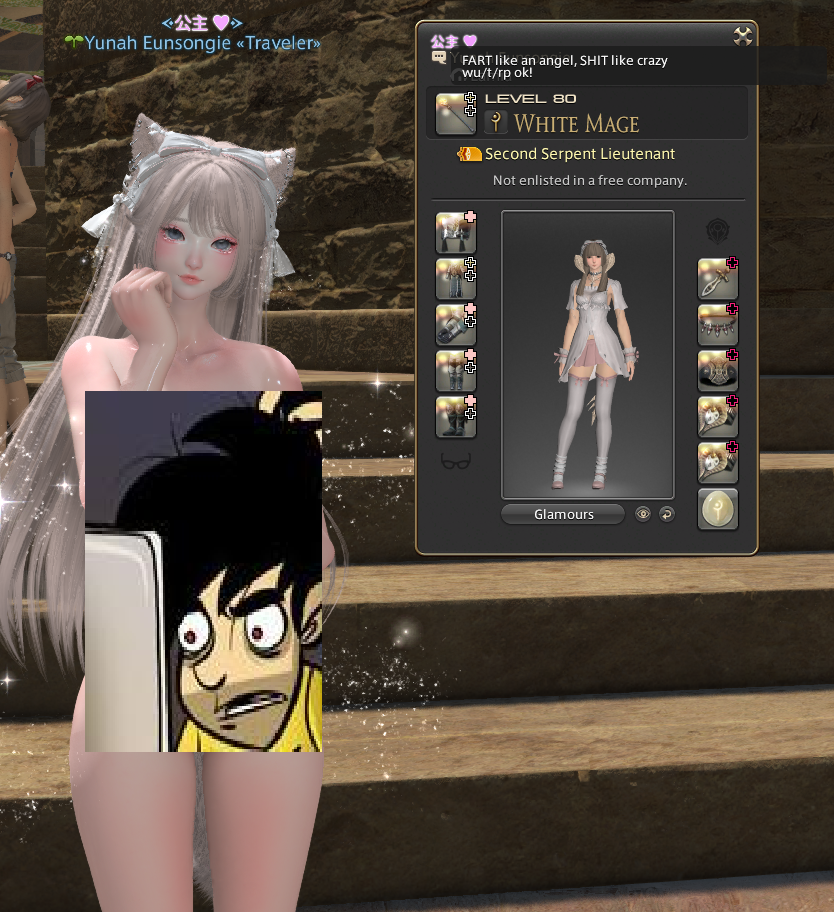 >>563204958go to jenova limsa and tell me who you see idling next to the egirl catgirls and femra more