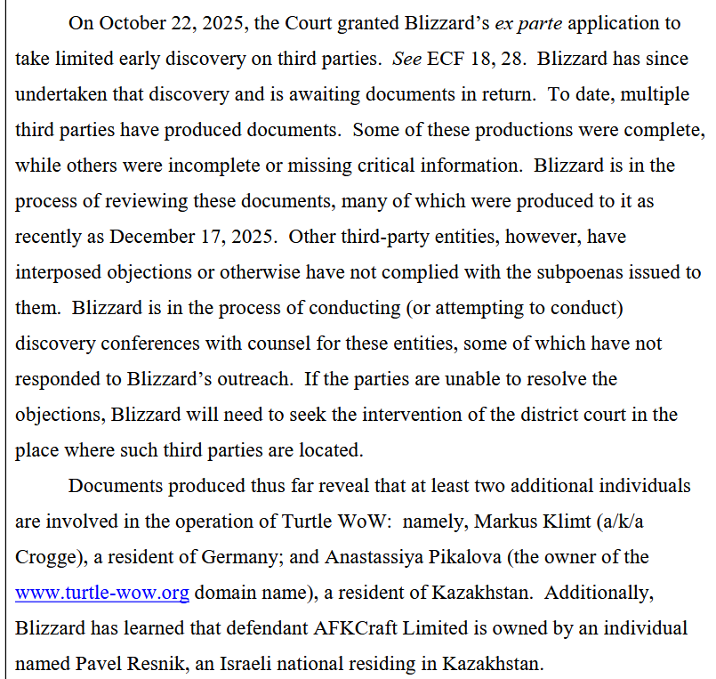 >>563228029thatd be the case if it was a simple C&D or dmca but blizzard is bringing RICO charges in this situationso all the devs are doxed and blizzard could even try to force people to get dragged into the states for racketeeringthey really REALLY want turtle dead for their own shitty vanilla+