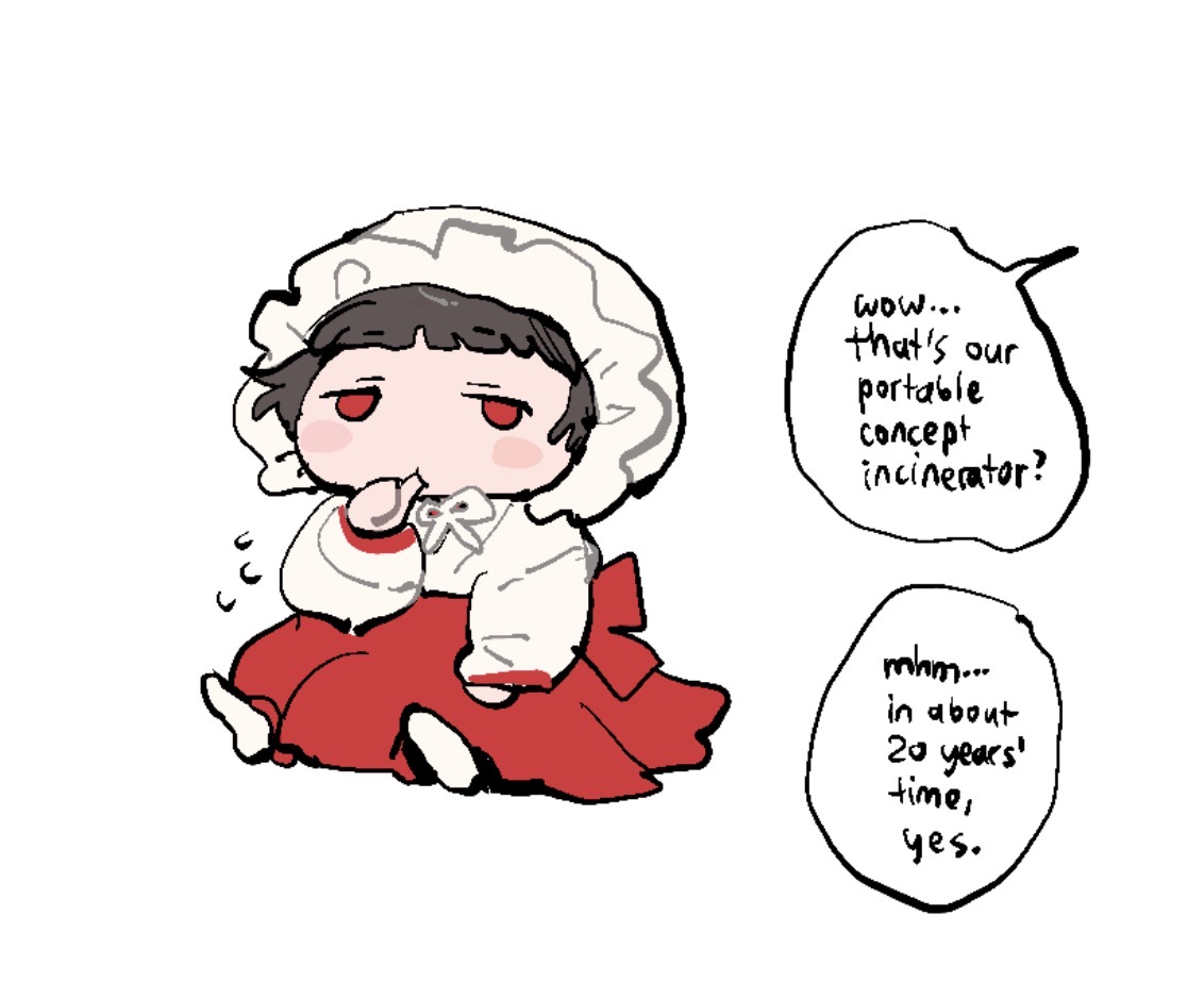 >Strongest bloodfiend family's second kindred wondering why you're trying to be sneaky about what you did with her father's corpse (potentially first kindred if his position can be inherited)>Ultimate weapon from a corp that can awaken at any moment from stress>Living concept incinerator trying to lobotomize herself whenever a strong opponent appears, risking becoming a mindless slasher>War criminal hoping you're not gonna be put off by whatever the hell she causedWhat other level of dangerous are we gonna get to babysit?