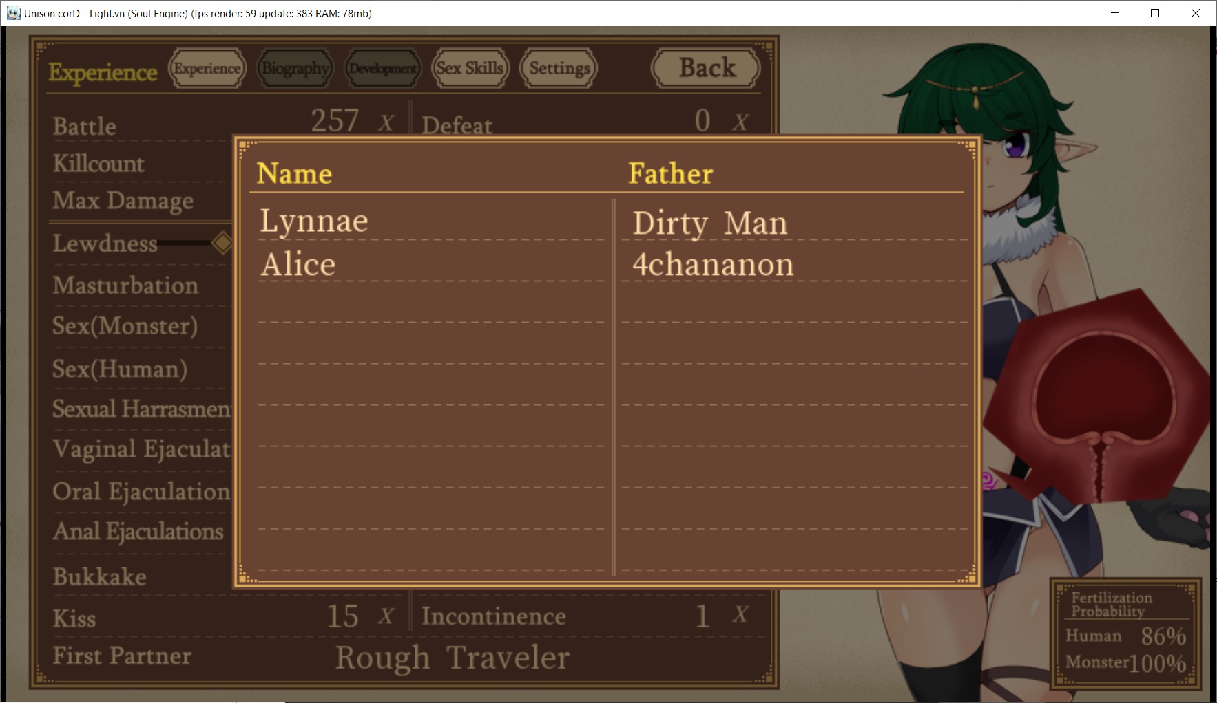 >>563223638EraSMT is basically the early games all ported down with a side of porn, legitimately fun minus sprite work.The SMT copy with the lovecraft girl.Sophie's detective system had the barebones layout for a setting I wish was more.Anyone who's gotten the RPG maker slots hard down like Blacksouls and Uh... I simple style dev that had colour coded girls.Rance games for the world/routes occasionally, and Kamidori as you said for sheer depth and forgetting it's h focused when you're building stuff.