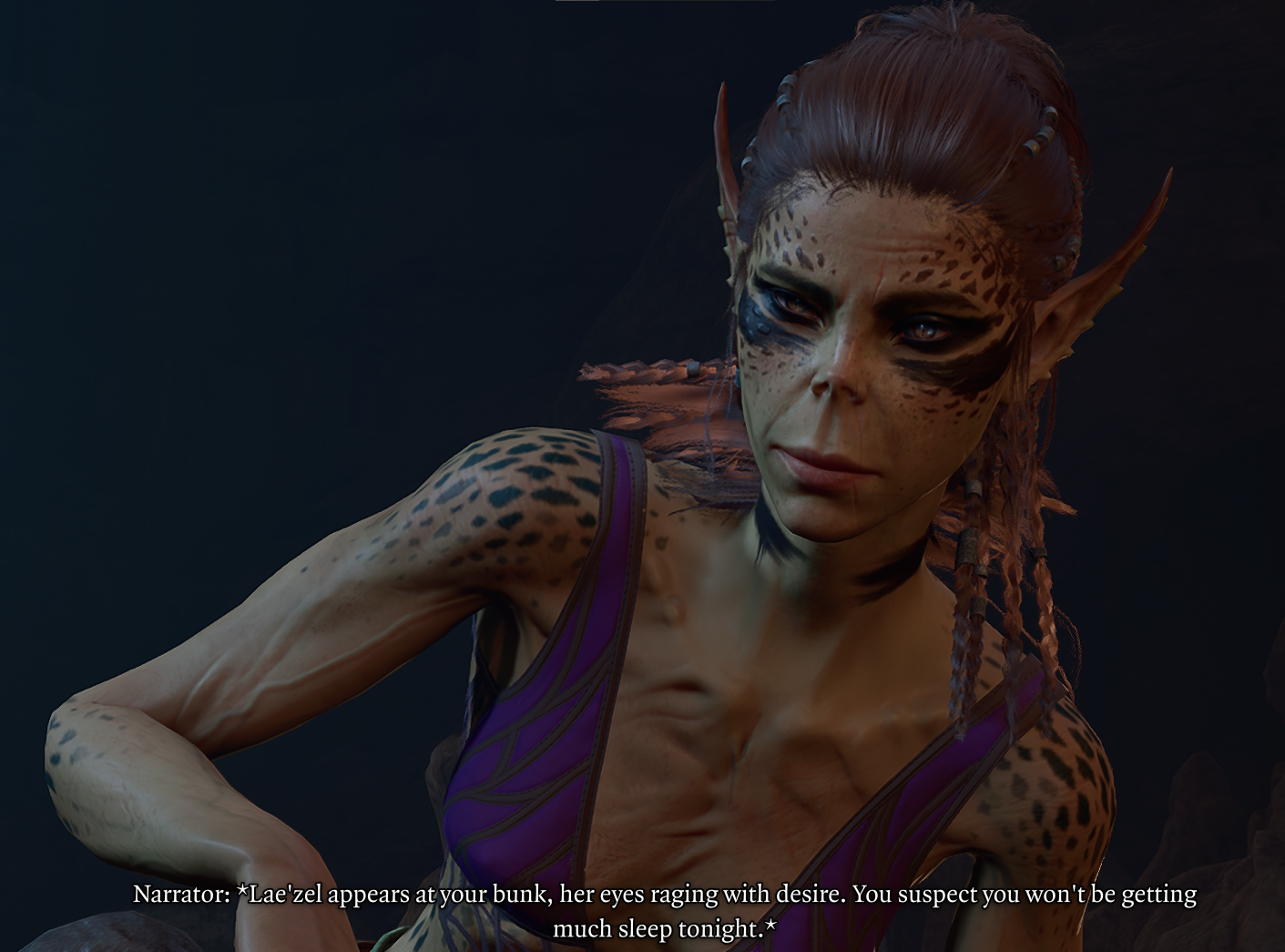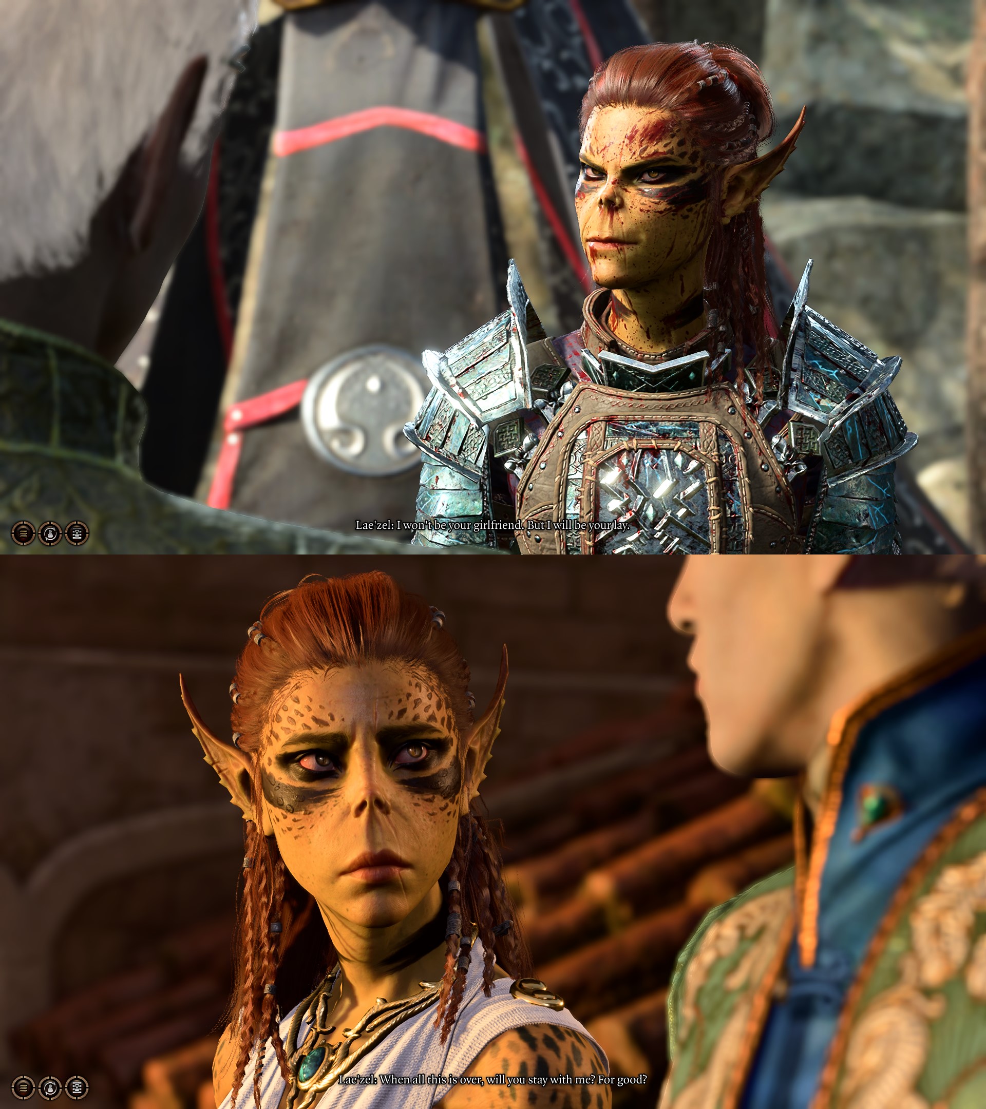 >Winning the fight means the romance is just natural, Lae'zel falls for the stronger man and so she should be with him>If you lose however then Lae'zel stops her self and goes against her very nature because her love for you is stronger than everything she believes in. She, for the first time in her life, feels pain when she causes someone pain. Your love (cock) literally mind broke a Githyanki, potentially for the first time in history.Today I will Remind Them