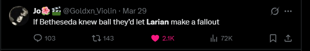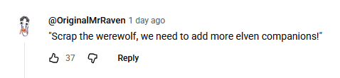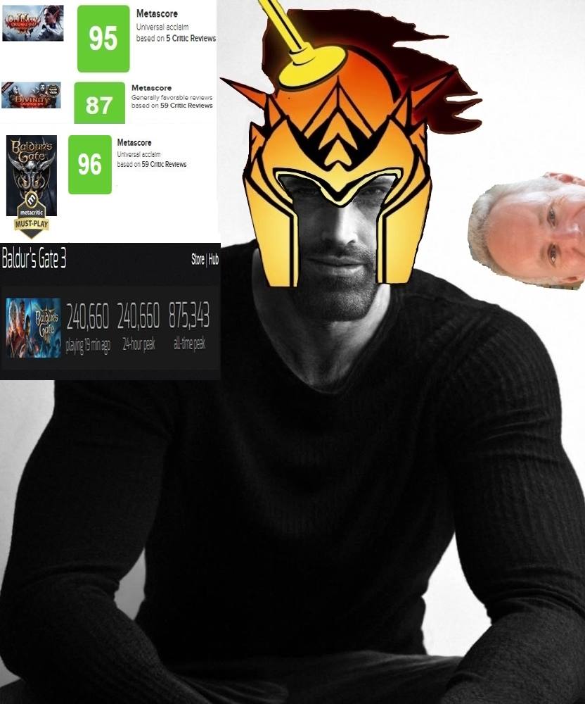 >>563437168I like the setting. The history and the races and the deities. Some of these you would also encounter in another D&D game, obviously, but BG3 features some unusual guests like the githyanki and involves no fewer than seven deities, depending on whether you count Vlaakith. It's an ambitious story because the lore groundwork was already laid for Larian, so they only needed to focus on making a fun video game instead of building a world from scratch - something they're not very good at, as evidenced by them soft-rebooting their original setting they had decades to build up. We talk about history and religion that are not soft rebooted when it suits the historian or the preacher. We talk about Shar, Selûne, Mystra, and Vlaakith because they are interesting divine figures.>>563441551>And for the record, comparing and contrasting other games from the genre is on topic for a game's general.Right. Everything here is sensible, and I don't even disagree with the logic. In fact, I have done the same in this very thread and in the previous one by mentioning games like Dragon Age, which have clearly inspired BG3. But comparison and contrast are tools of analysis - you don't compare and contrast an existing game with an upcoming one that may or may not live up to the hype, based on nothing more than blind faith or gut feeling. As you're very well aware, even an industry's darling like Bioware can lose goodwill very quickly. Some here try to paint these rants of mine as trying to "police" the thread, but that's not my intent. I just know that when you give these shitposters an inch, they take a mile, so I'm not inclined to enable that behavior.>You just have to discern whether it's natural, or unprompted and intentional.Do you think Larian's Next Game will have an (allegedly) Lawful Evil female drow who did nothing wrong?