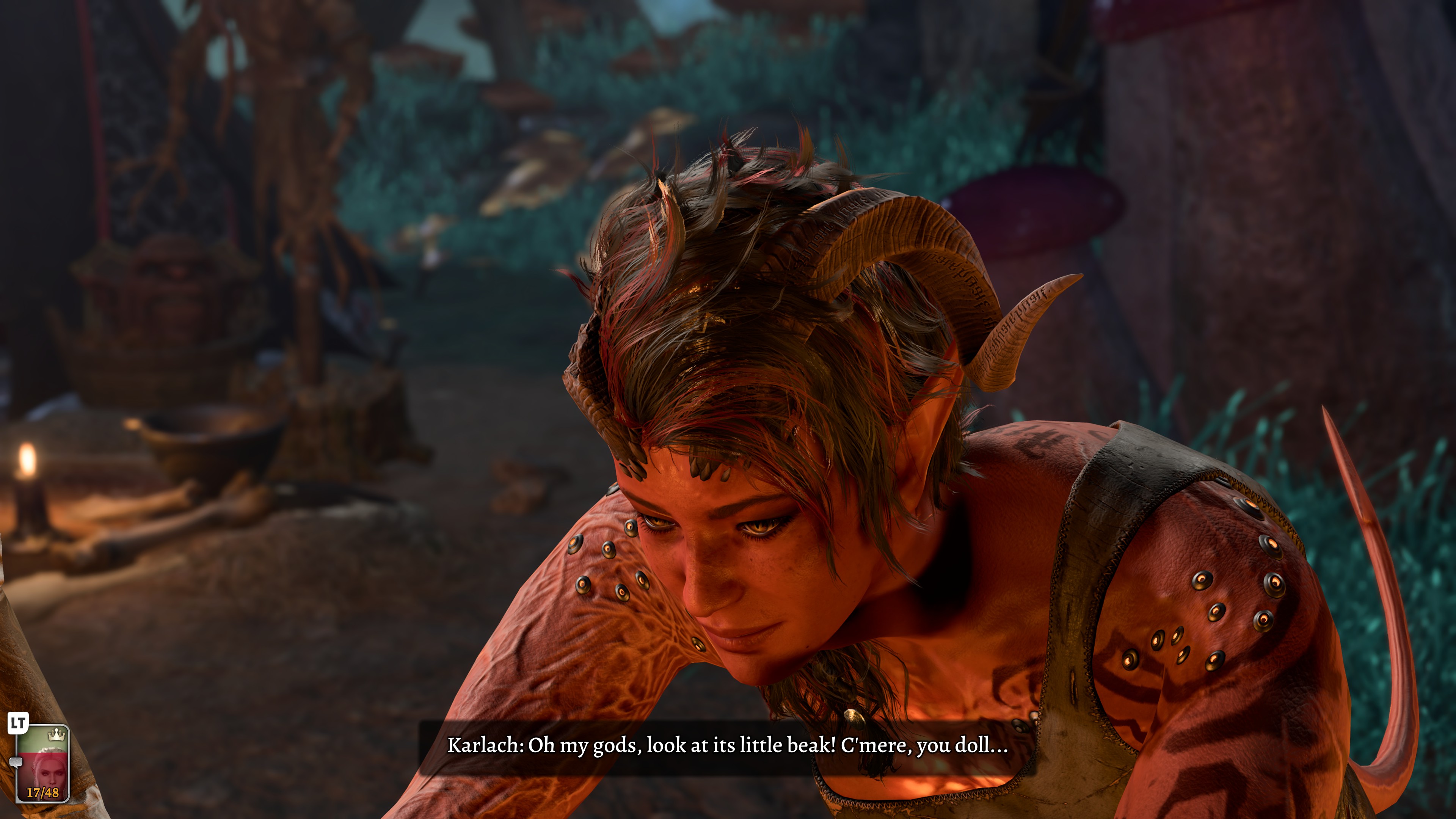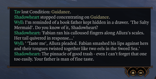 >"n-no more g-- hurrgh... goodberry pie... too mmff much...">Shaddy: "Come on Tav, finish your goodberry pie">Tav: HURRRK>Shaddy: (casts Command: Eat)>Tav: mmrmfrrgghnm nurrffmm good yes goodberry good>Halsin: "Nature's bounty ;)"
