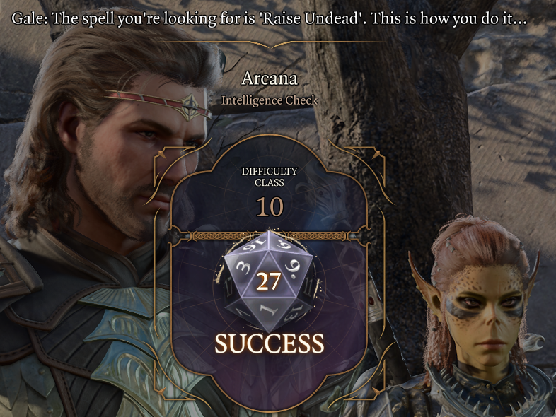 >>563468797>yeah it'll definitely be a hard sell to customers to tell them that certain rolls are predetermined to failEh I disagree, unless we're talking about being locked out of a lot of options, I think people would be fine with flavourful options being locked. Shadowheart not being able to get a +2 from the Mirror of Loss is a "big" thing that's locked away. Like other than Lae'zel being able to pretend to be Balduran, I can't think of any other choices where it should be auto fail.