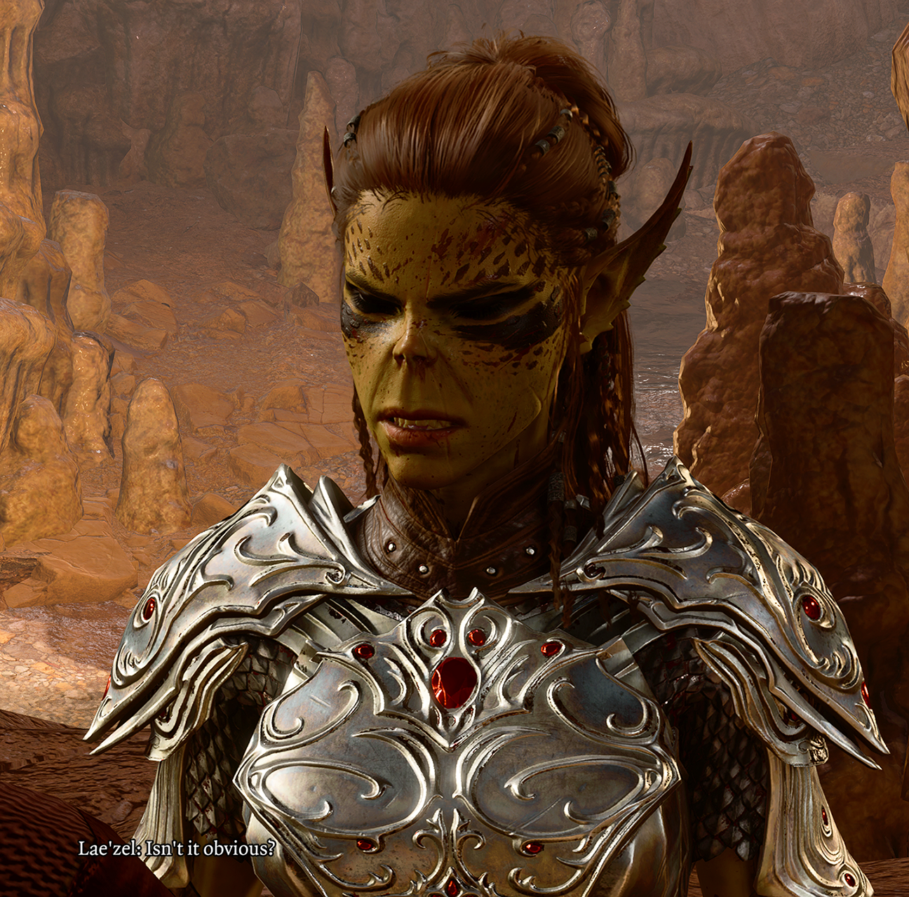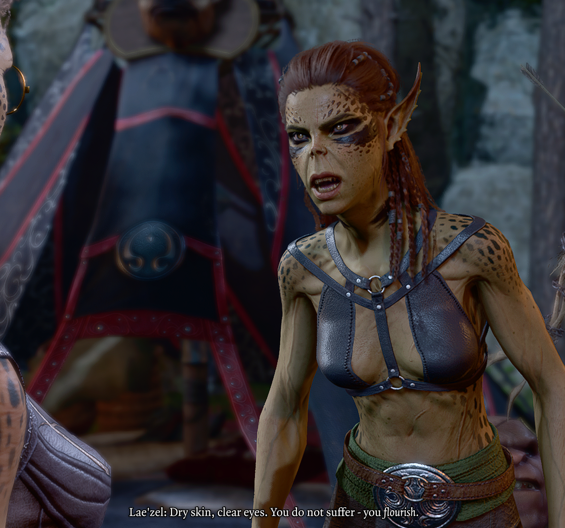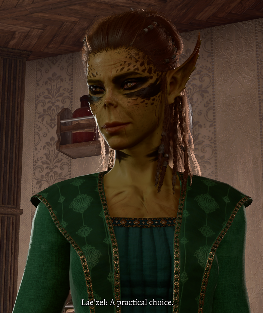 Lae'zel is yellow.Lae'zel is foul.Lae'zel, a stain on the universe.Lae'zel might've done some things right, we assume, but she just grosses me out.