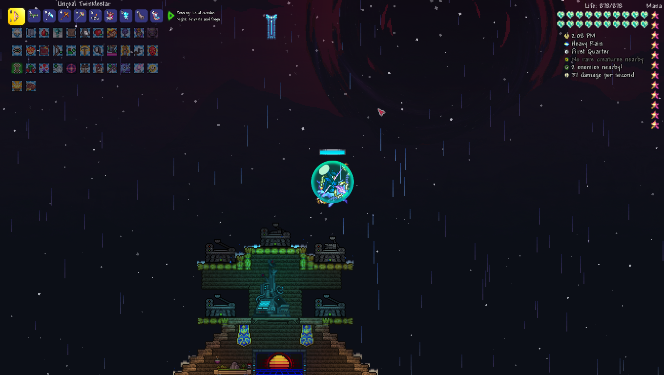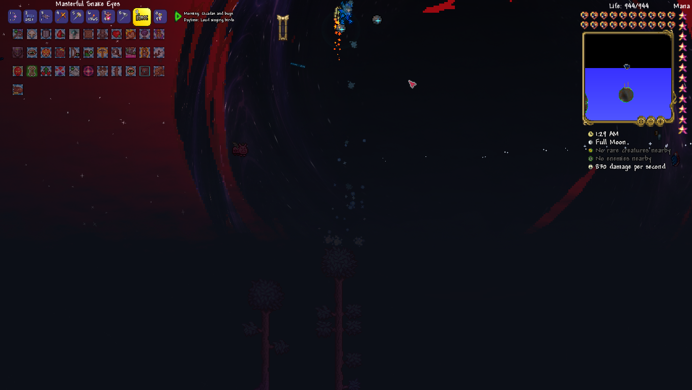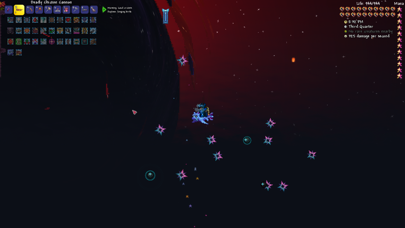You know the irony I just realized? I've been daisychaining games back to back to have a central narrative, and my previous game (starsector) was one I also had to quit early because of a mod that threw unbalanced trash at me and ruined the run. It also involved entities emerging from black holes.And that's how my last Terraria run died. What a coincidence.