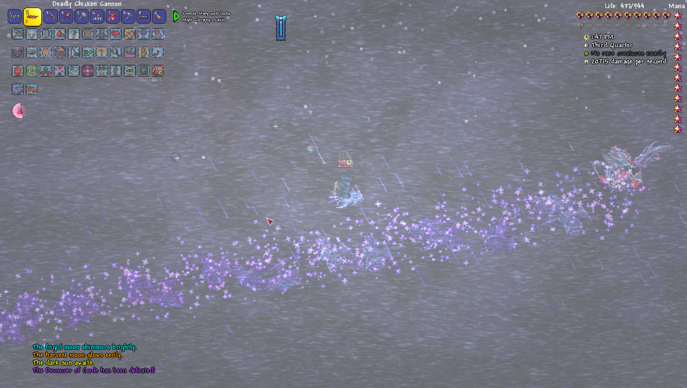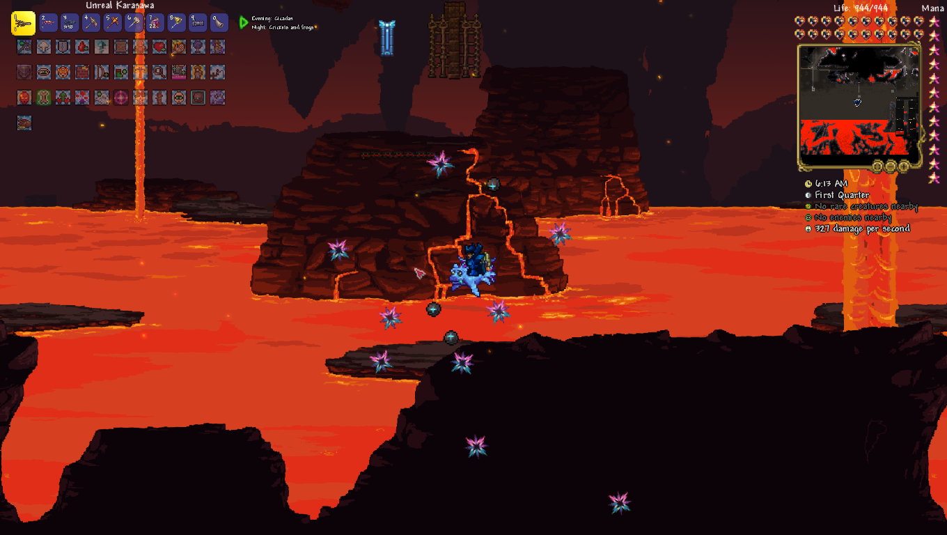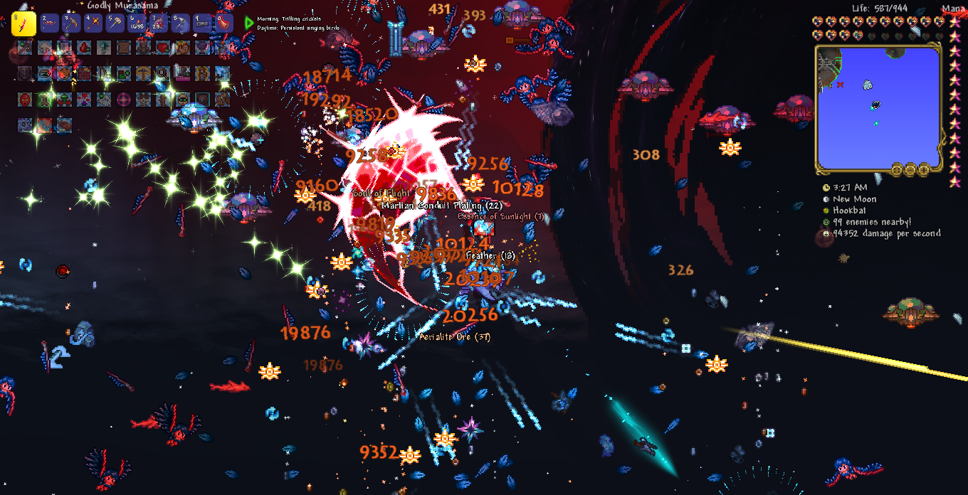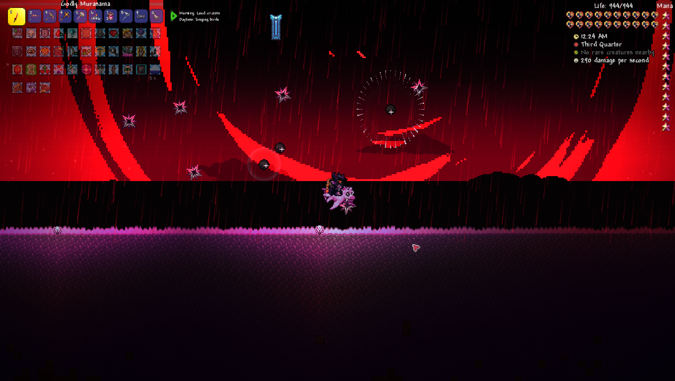 You know the irony I just realized? I've been daisychaining games back to back to have a central narrative, and my previous game (starsector) was one I also had to quit early because of a mod that threw unbalanced trash at me and ruined the run. It also involved entities emerging from black holes.And that's how my last Terraria run died. What a coincidence.
