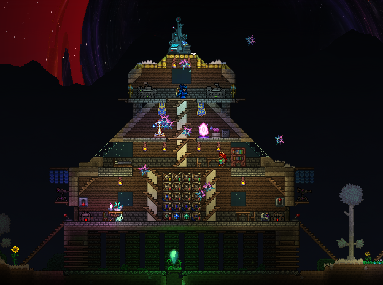 >>563251137You know, if I'm gonna face my painful death at the hands of a black hole, I might as well aestheticmax. What do you think so far? Switched it out for Drywood (spirit mod), smoothed out the edges, changed the torches for some proper lamps, made the walls a little thicker.