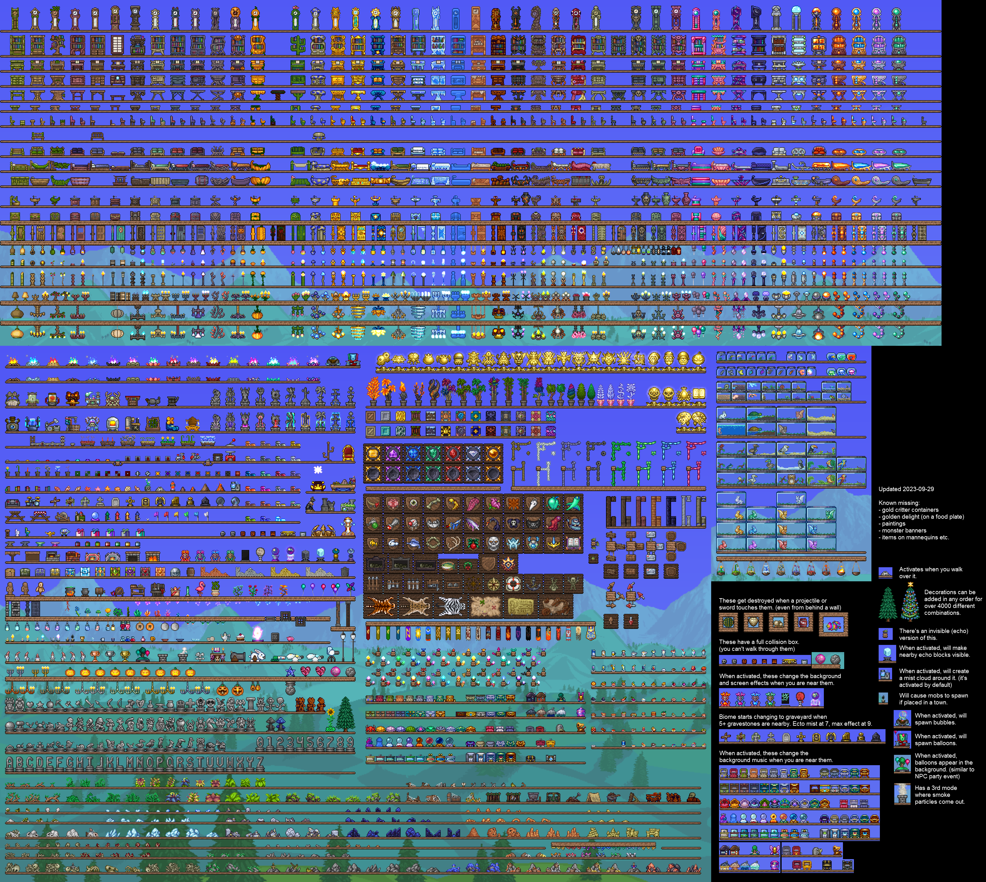 Billions Must Bump Edition>-1.4.5-<>Changelogterraria.wiki.gg/wiki/1.4.5>-Multiplayer-<>Public Serversterraria-servers.com>-Game Information-<>Starter Guideterraria.wiki.gg/wiki/Guide:Getting_started>Official Wikiterraria.wiki.gg>-Visual guide to blocks, furniture themes, paints, and more-<pastebin.com/nj15NkLiimgur.com/Wd11atD.png>-World Seeds-<docs.google.com/spreadsheets/d/1oi_oni_jKe83MZFx5N-B-WkYQUpvZhRM3OFwID4X9hk>-Game tools-<>TShock - Server clienttshock.co>Web-based inventory editoryal.cc/r/terrasavr>TerraMap - World viewerterramap.github.io/>TEdit - World viewer/editorbinaryconstruct.com/tedit/>Omnitool - Creates world from image, unique world generation optionsgithub.com/Berserker66/omnitool/releases>-Modding-<>tModLoader 1.3github.com/tModLoader/tModLoader/wiki/tModLoader-guide-for-players>Mod List - Summaries of the most recommended/popular mods (mostly outdated)pastebin.com/qh8EJmxWpastebin.com/S8Js21fq>Prevent mods auto-updatingimgur.com/a/h5rwo4E>/tg/ Texture Packspastebin.com/Q8P4WxHH>/tg/ Risqué Textures Archivemega.nz/folder/0gpBHCYb#X-ODIRk37bMPDfLc2aW-nQ>Player Resource Bars and Visual Radar ports to 11.x (PRB appears to be somewhat buggy in MP, VisualRadar works fine)pastebin.com/QN12Ltig>Autohotkey Terraria Autoclickermega.nz/file/fExgUaRY#0wfxlVdBLDYUMfrH-qfI_0CSWnUShbeNKxPQS7FPRMY (raw: pastebin.com/mPDZRst1)>Particle lag fix (Mac)github.com/Candygoblen123/TerrariaArmMac>-Other neat stuff-<>Fancy buildsmega.nz/#!bBhX0QzY!DaLnBdlZzVM7QOMKDpiCZM2GUaH0SQFDhe-RMNBWeWsforums.terraria.org/index.php?threads/terramonoliths-1-4-journey-builds-vanilla-terraria-no-mods.97910/>Best Adventure Mapspastebin.com/9hbZv51V>Class setupsdrive.google.com/drive/folders/1BOFcsgKl2gvc7IaFYKHusIQYlhtMj5bm>-OP pasta-<>Please use the info from this link when creating new threadspastebin.com/hVr6XeiD/tg/ has fallen>>562816463