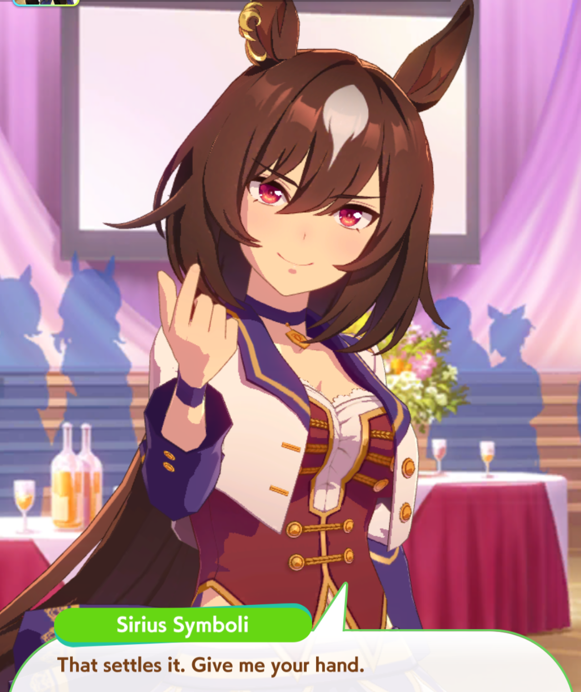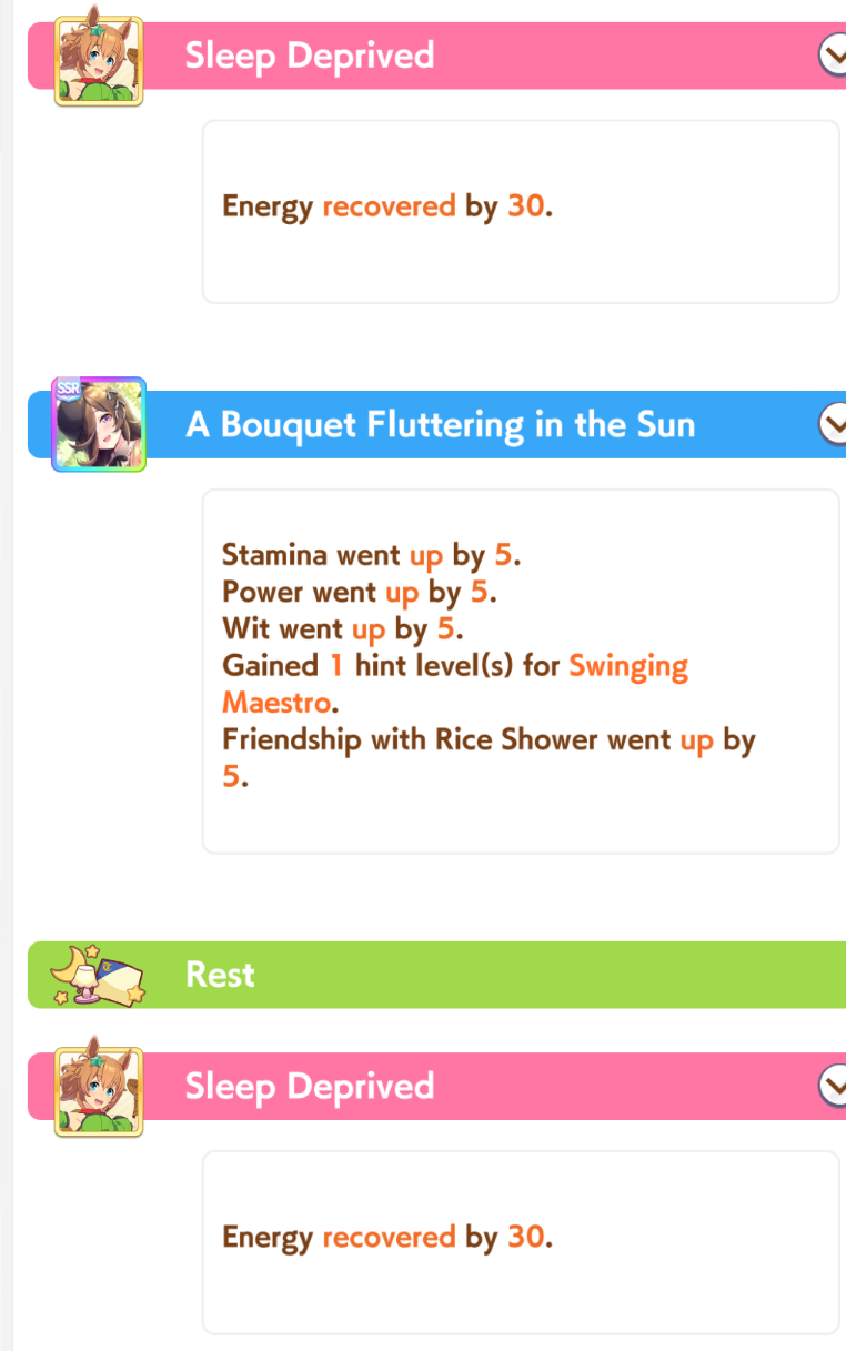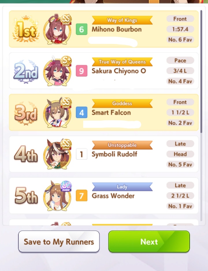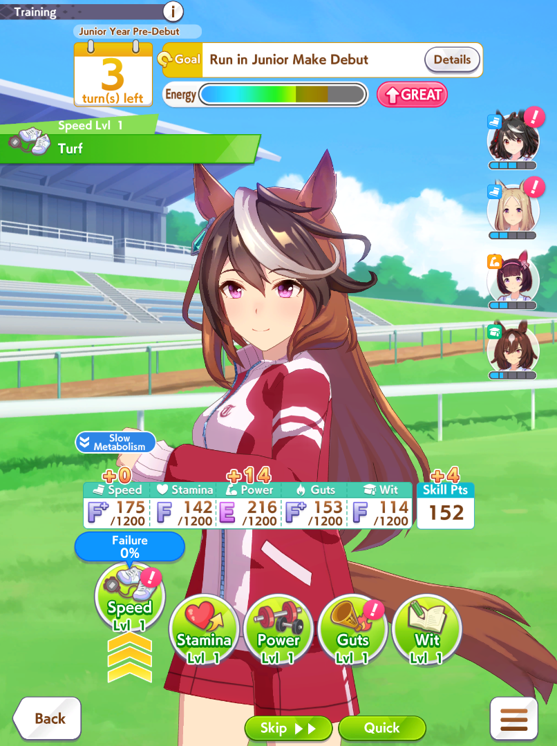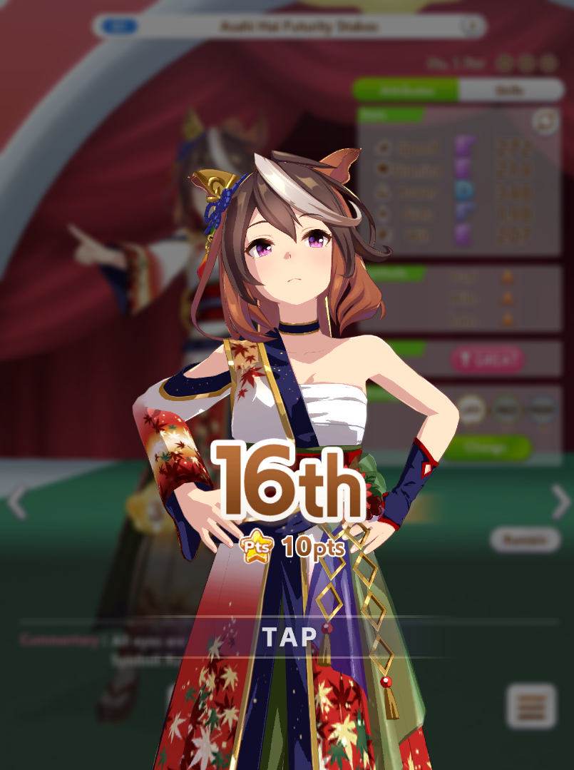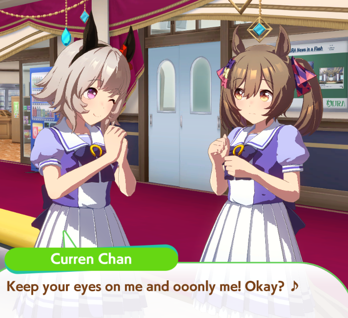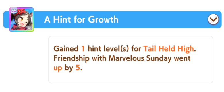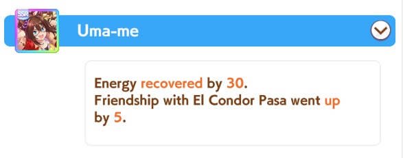 I think this is a pretty neat turn with a lot of moving partsRelevant info: this is Late March, the turn before Satsuki Sho, this would be Sirius's first friendship training for her unique, and I have CharmingWhat do you do?