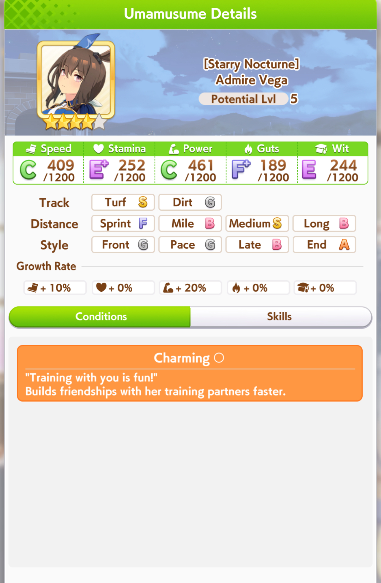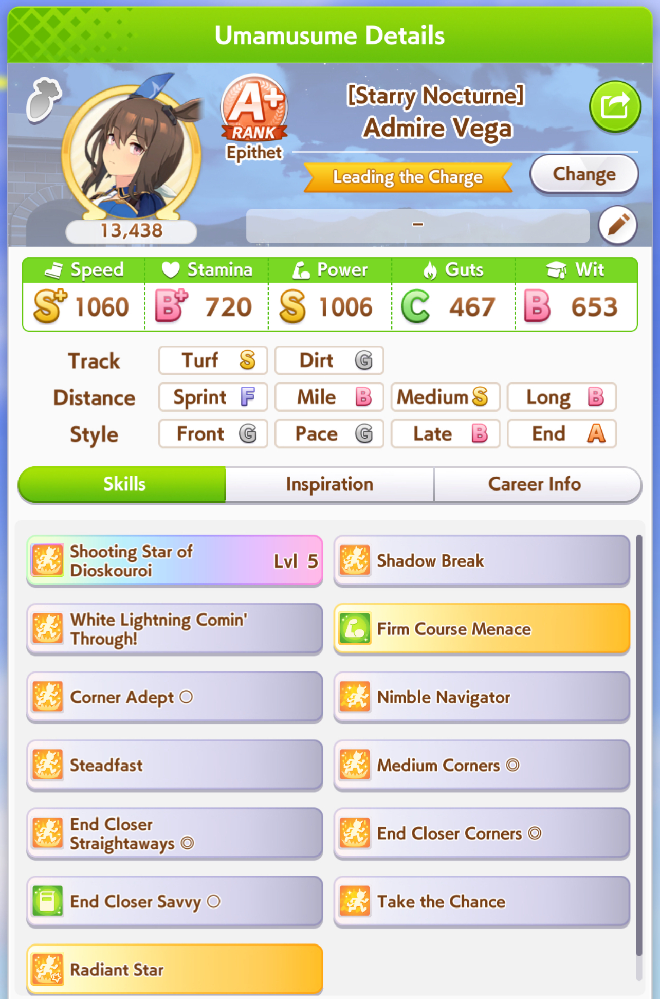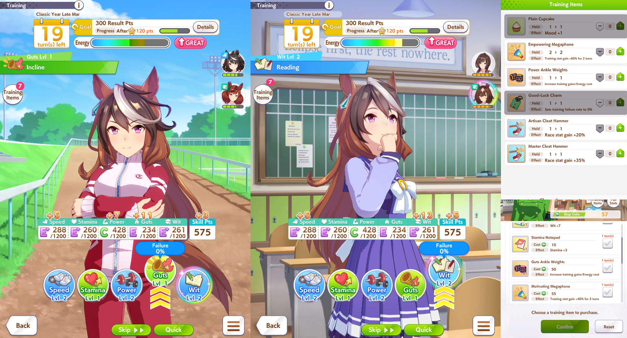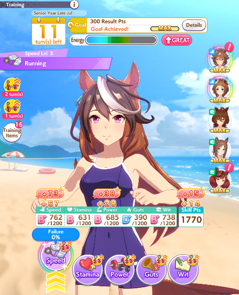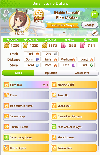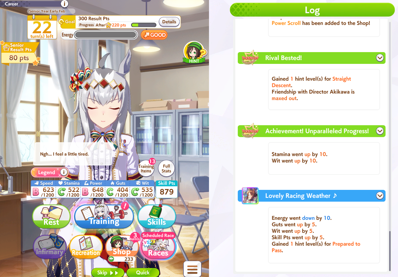 I think this is a pretty neat turn with a lot of moving partsRelevant info: this is Late March, the turn before Satsuki Sho, this would be Sirius's first friendship training for her unique, and I have CharmingWhat do you do?