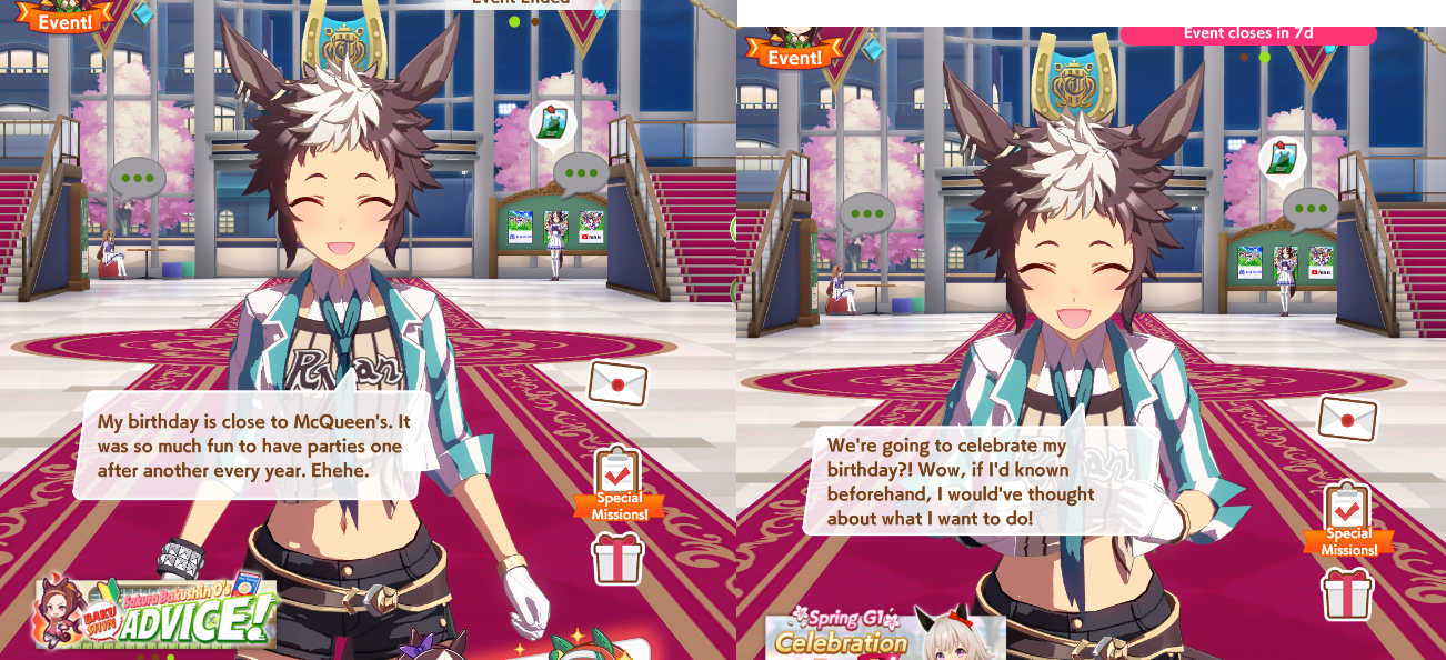Previous: >>563226343>Global Game NewsLink your account to Cygames iDCurrent Scenario: Make A New Track aka "Trackblazer"Current Rate Up Trainee: Ballroom Seiun Sky (3*), Ballroom Fuji Kiseki (3*)Current Rate Up Support Cards: SSR Symboli Rudolf (STA), SSR Sirius Symboli (WIT)Current CM: Aries Cup - Nakayama Turf 2000mCurrent Event: Ligne Droite Story Event>Schedule03/02 - 04/14 - Halved TP Cost & 2x Career Mode Rewards04/12 - Nishino Flower (3*), Daiwa Scarlet (SSR), Sweepy (SR)04/20 - Yaeno Muteki (3*), Ines Fujin (SSR), Twin Turbo (SSR)04/20 - Aries Cup - Medium/Right/Spring/Firm/200004/26 - Golshi Week Celebration04/26 - Cheerleader Nice Nature (3*), Cheerleader King Halo (3*), Bamboo Memory (SSR), Seeking the Pearl (SSR)04/26 - Tracen Cheer Squad Story Event04/30 - Ines Fujin (3*), MR. C.B. (SSR), Tokai Teio (SR)https://pages.snep.pw/uma/anni-skill-changes>JP Game NewsCurrent Rate Up: Lucky Lilac (3*), SSR Aston Machan, SR Hishi AmazonNew Scenario "Beyond Dreams" releasedTimeline: https://uma.moe/timelineCygames Webstore: https://webstore.cygames.com/en/umamusume_en>Thread Clubshttps://rentry.co/umaglobalclublistYou must be E3 (20k points) to join a circle. Apply with /uma/ or /vg/ in your profile or post ID in the thread.>All Guides & Resourceshttps://rentry.org/uma26Game databasehttps://gametora.com/umamusume (Click the gear to switch between JP / global server info)A basic guide for newfagshttps://rentry.org/umaglobalFind networks if your region is blocked from the game or clienthttps://www.umavpn.topSeiyuu & Concertshttps://rentry.org/umstUmamusume Birthday Calendarhttps://ウマ娘.攻略.tools/events/birthdayUma Texthttps://umareader.idsmile.xyzCustom Stickershttps://schizo.farm/resources/stickers