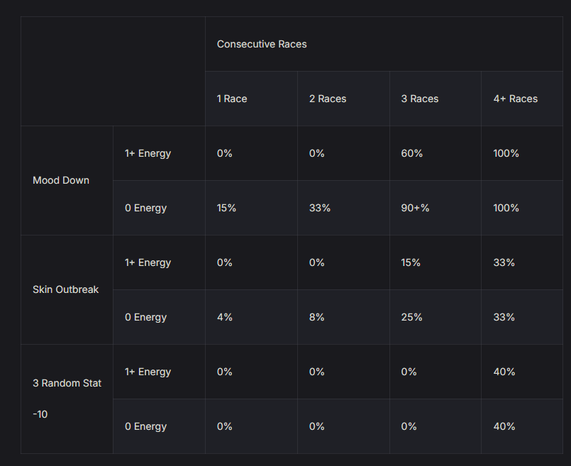 Is there a way to run 5 races in a row and not get the -30 stats?