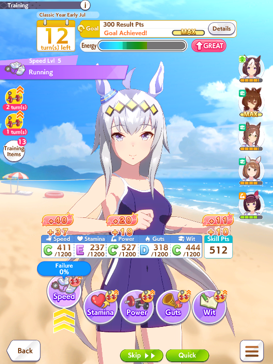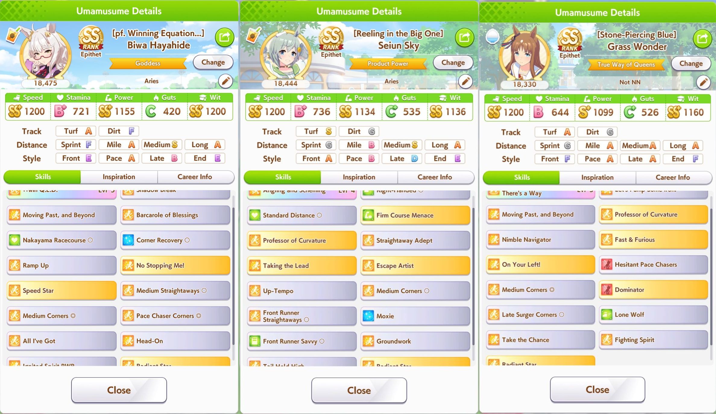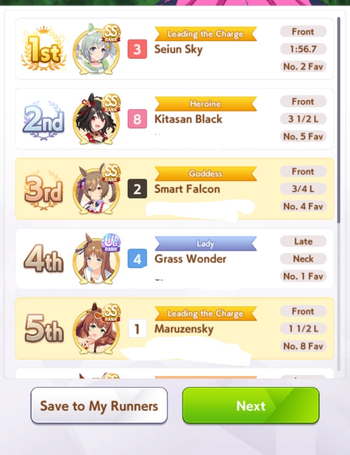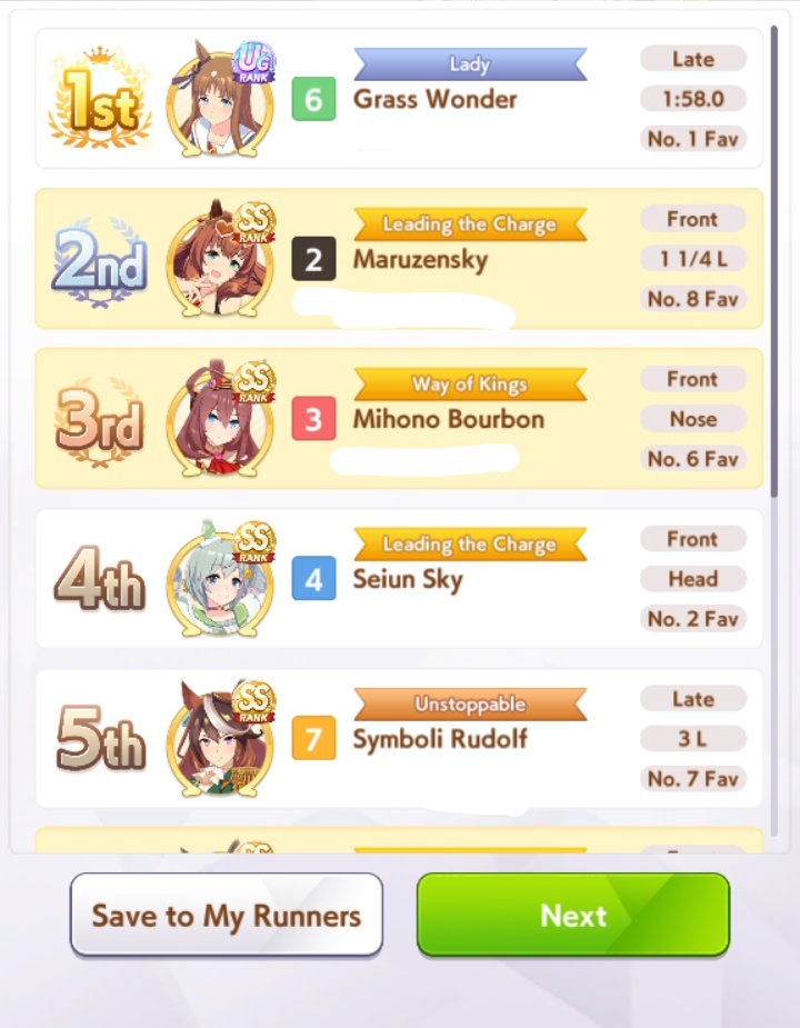I've won a few rooms with Grass and Spechud so far which made me happy.I think having a velocity unique is better to edge out wins against Oguri and Fronts because my Ryan hasn't won a single room yet.