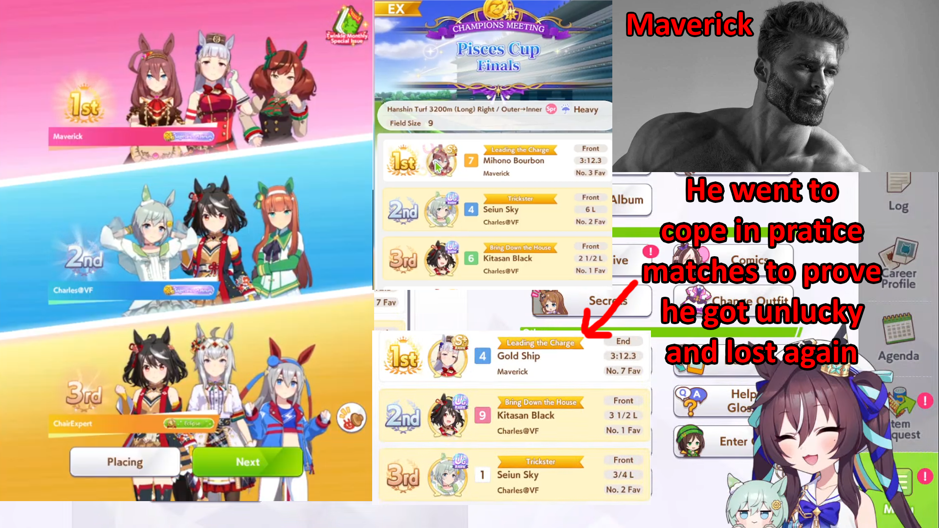>>563258918i should try to understand things like pace and down/uphill more, maybe would explain why my most dominant CM was libra, yet one of my absolute worst was pisces (though got finals w/ fatass sweaty whales for both)