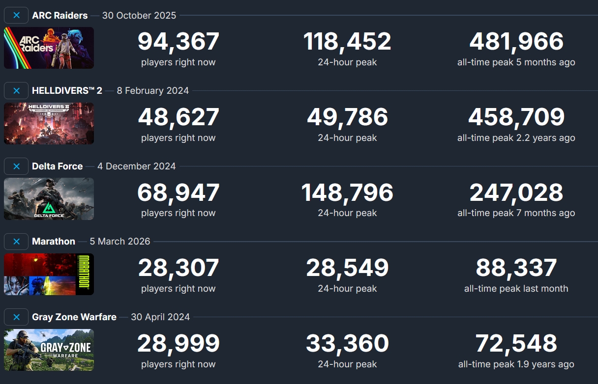 >>563245695>gray zone has a higher ccu peak than marathonKEK
